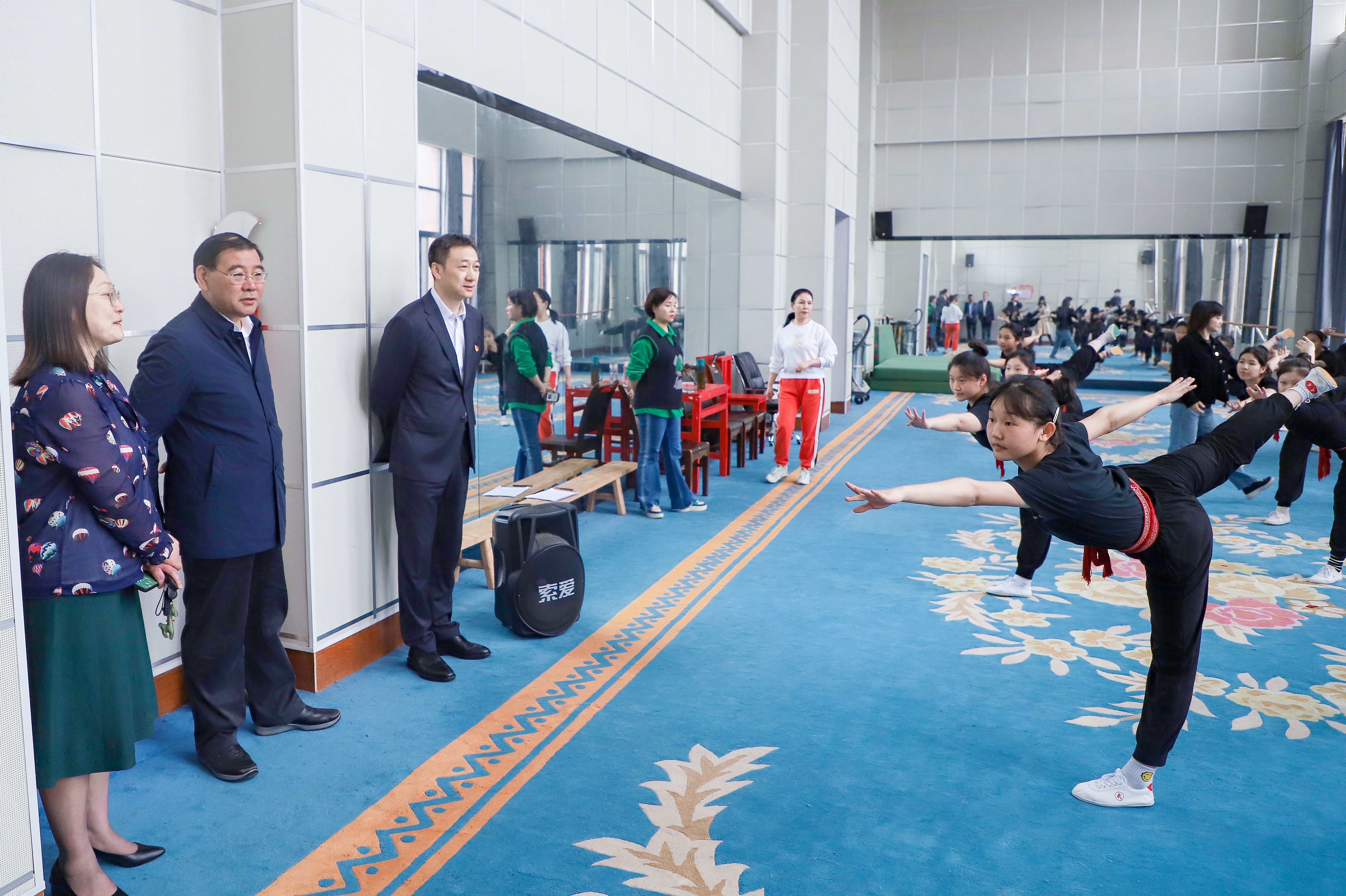 杨骁先后来到戏曲艺术学院戏曲表演专业实训室、练功场地等,认真了解戏曲艺术学院发展历程、专业群建设、人才培养等情况,观看学生戏曲表演基本功练习,聆听豫剧马派代表剧目《穆桂英挂帅》选段演唱,并与学生亲切交流。