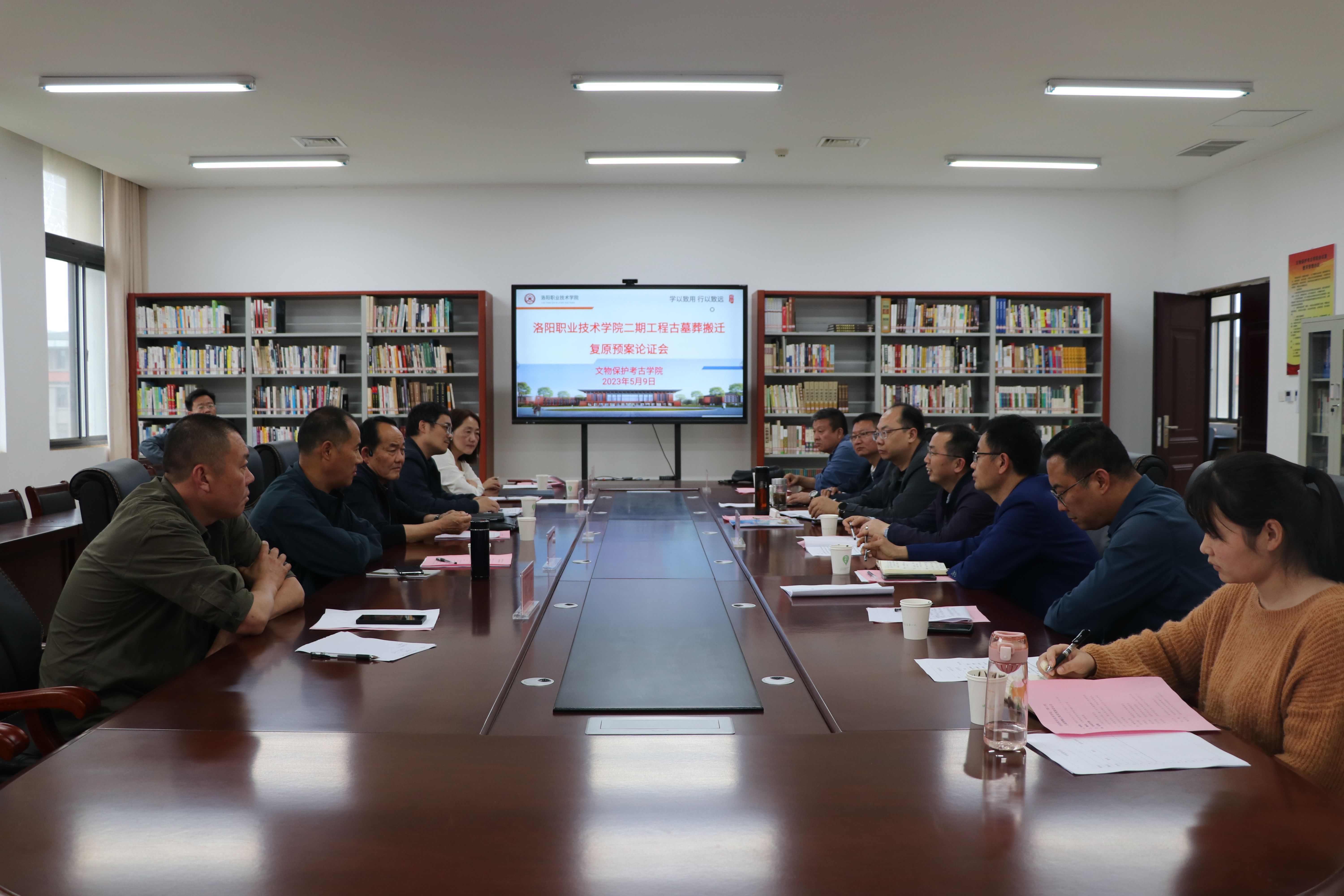 5月9日下午,文物保护考古学院召开洛阳职业技术学院二期工程古墓葬搬迁复原预案论证会。洛阳市文物局原局长郭引强、副局长仵荣全,洛阳市考古研究院副院长程召晖,我校副校长余江宁出席论证会,基建处、课程中心、文物保护考古学院及相关企业负责人参加论证会。