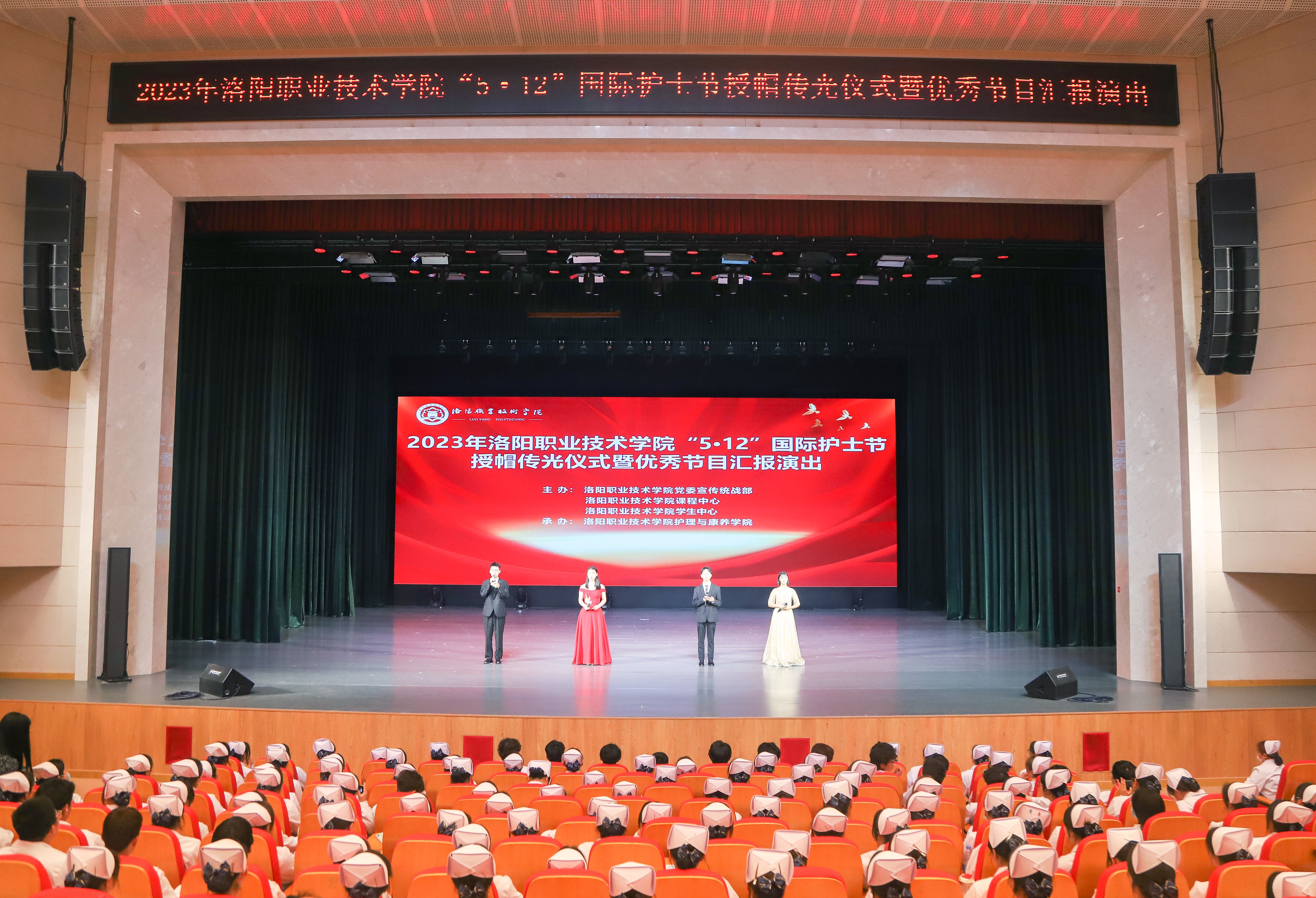 在“5.12”国际护士节来临之际,为传承南丁格尔精神,培育优秀护理人才,5月11日下午,我校在洛职大剧场举行“5.12”国际护士节授帽传光仪式暨优秀节目汇报演出。校领导朱美荣、任晓平、张志友、孙建勋出席活动。党委宣传统战部、课程中心、学生中心等单位负责人及护理与康养学院师生代表参加活动。