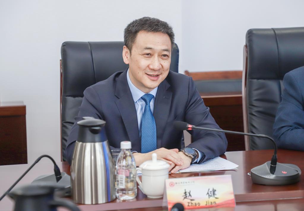 在图书馆801会议室召开的座谈会上,赵健对麦多明一行的到来表示欢迎。他介绍了我校的历史沿革、专业设置、办学特色、师生规模、发展成果等基本情况,着重介绍了我校与英国高校的交流合作情况。他表示,洛阳职业技术学院致力于推进国际化办学战略,鼓励学生前往海外大学学习深造,同时也欢迎国际学生来校交流,希望在英国驻武汉总领事馆的支持下,能够搭建起与英国职业类大学沟通合作的桥梁。