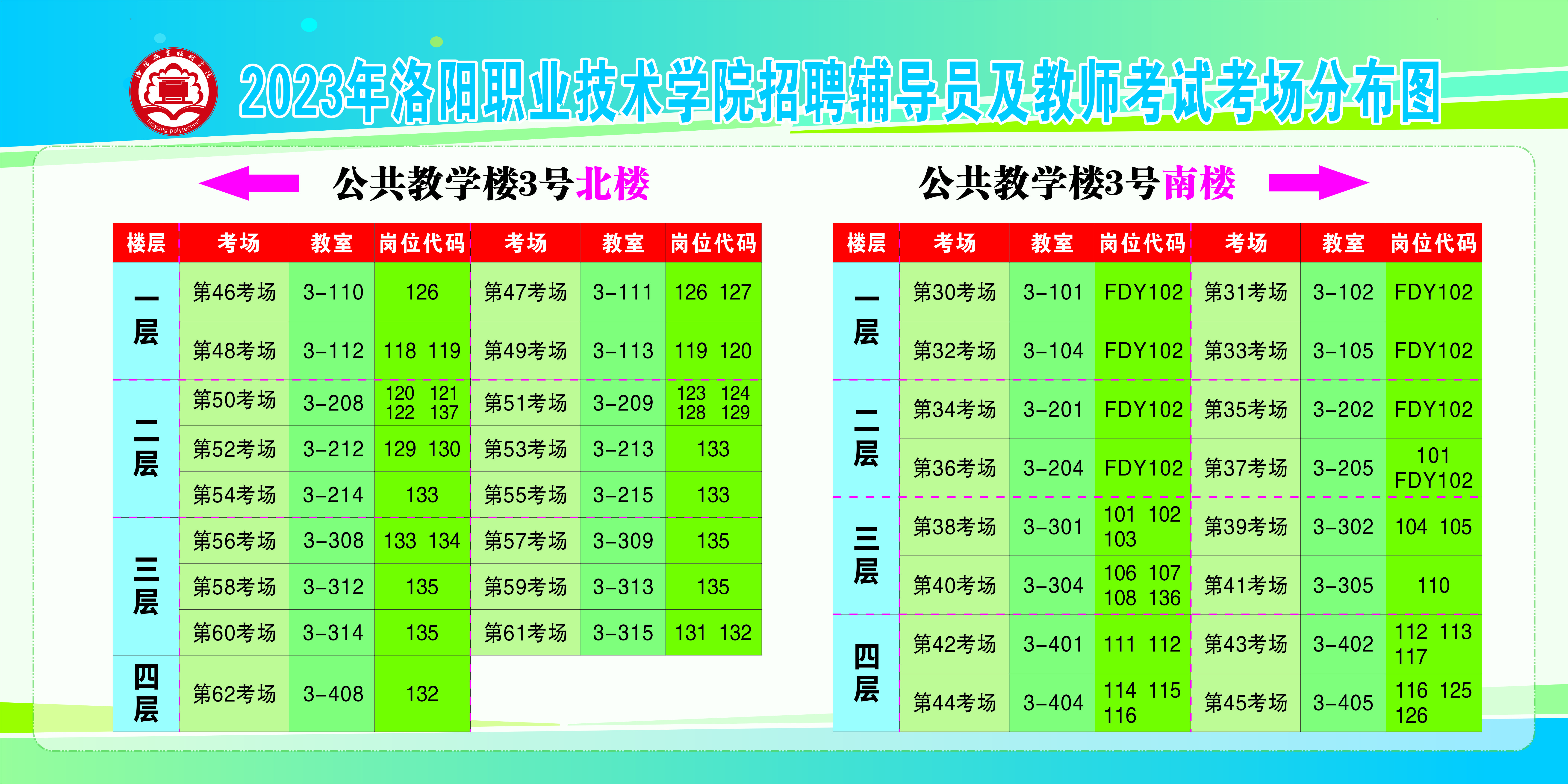 (二)笔试地点:洛阳职业技术学院伊滨校区(伊滨区科技大道6号),可乘105路、113路等到达南大门。