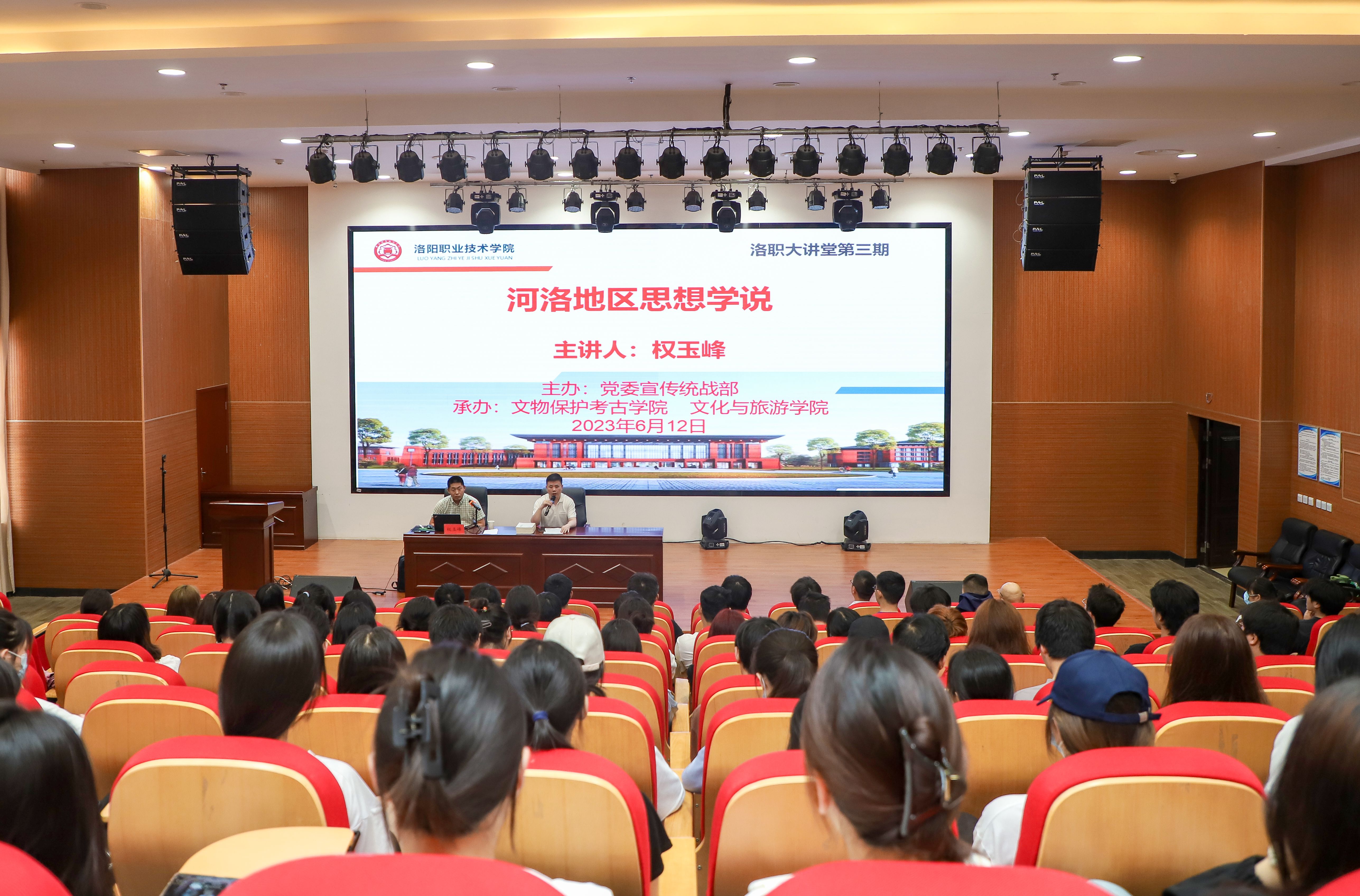 “洛职大讲堂”由党委宣传统战部主办,活动通过深度发掘学校各类人才资源,邀请专家学者定期开展专题讲座,引导广大师生培育和践行社会主义核心价值观,弘扬中华优秀传统文化,培养优良的道德品质和创新意识、创新精神,引导青年师生健康成长。“洛职大讲堂”第三期由文物保护考古学院、文化与旅游学院承办。旨在通过对河洛文化的详细阐释,增强广大师生对河洛文化独特性和卓越性的深刻认识,进一步提升文化自信和民族凝聚力。