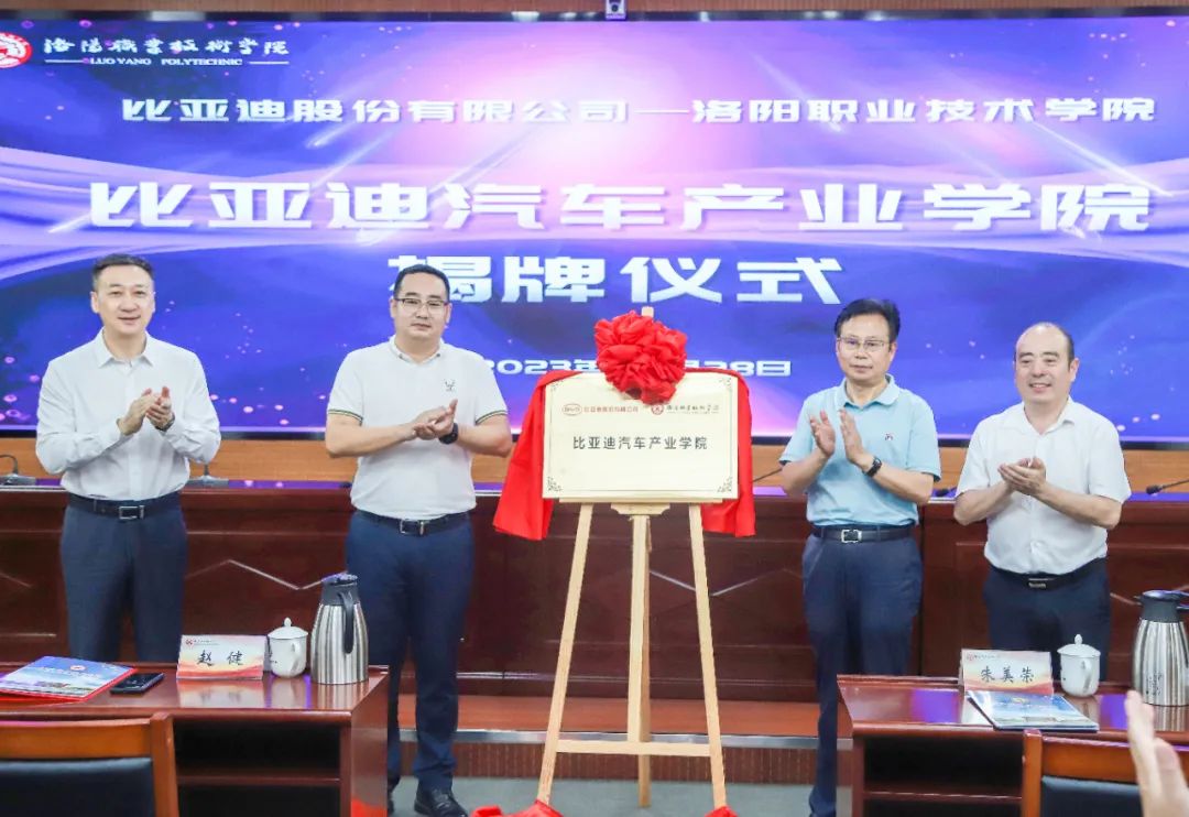根据比亚迪汽车产业学院合作协议,洛阳职业技术学院将与比亚迪股份有限公司合作共建高职汽车类专业,共同开发面向一线岗位的技术课程、人才培养方案和教学计划,通过开展订单培养,实施专业共建、师资共训、课程共编、标准共研、成果共享等深度合作模式,培养具有一线生产技能、测试技能的技术人员和现场工程师等。双方还将合作开展1+X证书、职业资格证书等培训,以及共建专业的各类技能竞赛、技术研发及成果转化等。