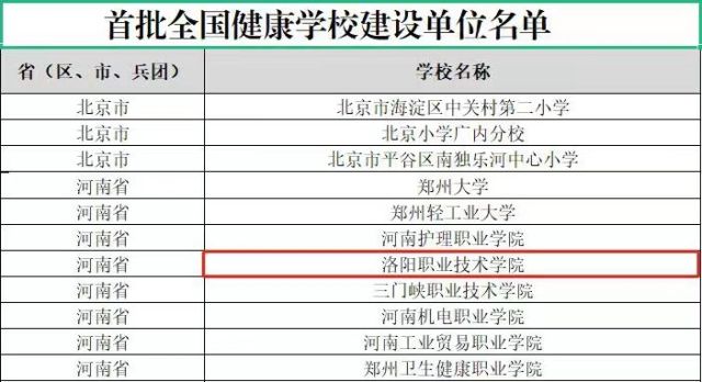 近日,教育部公布了首批全国健康学校建设单位名单,洛阳职业技术学院成功入选。