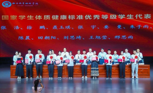 党委书记朱美荣为省级优秀毕业生代表颁发荣誉证书,赠送毕业纪念胸章。全体校领导为毕业生代表颁发毕业证书,为国家学生体质健康标准优秀等级学生代表颁发证书,并赠送毕业纪念胸章。