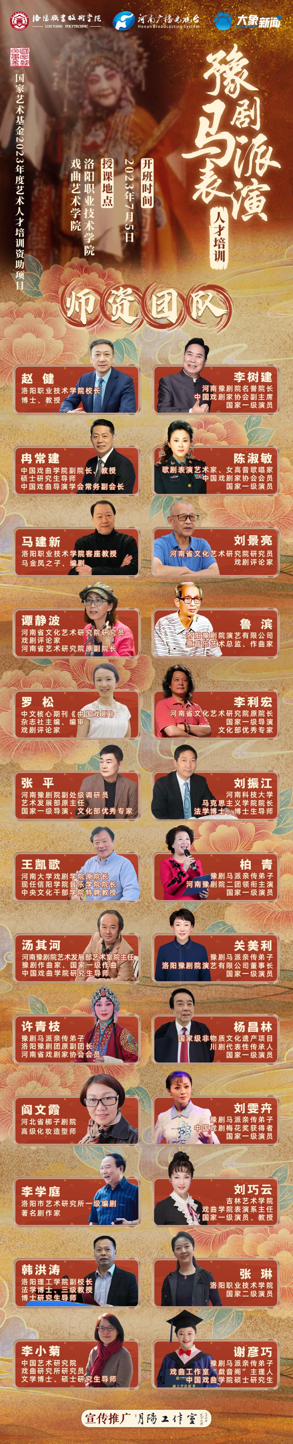此次豫剧马派表演人才培训班面向全国聘请授课专家26人,均为实践经验丰富、理论功底深厚、教学能力精湛的名家名师。