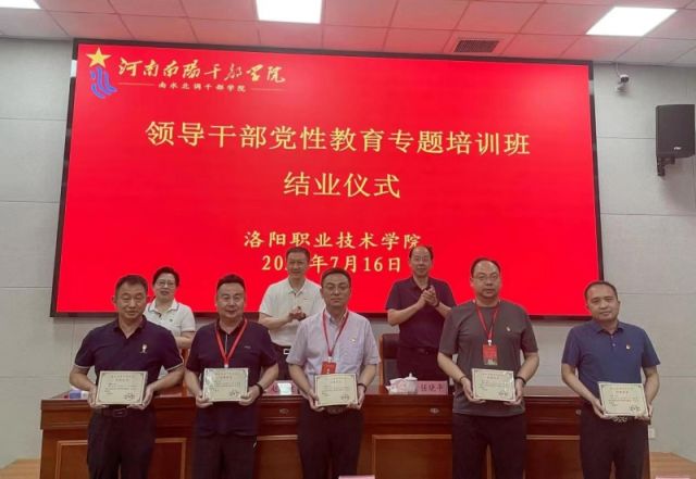 7月17日,洛阳职业技术学院领导干部党性教育专题培训班在南阳干部学院举行结业仪式。校领导赵健、任晓平、韦元民、张卫国、余江宁、张志友、邓卫国、刘航、李东红出席结业仪式,全校各部门负责人参加结业仪式。