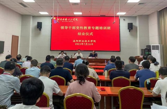 7月17日,洛阳职业技术学院领导干部党性教育专题培训班在南阳干部学院举行结业仪式。校领导赵健、任晓平、韦元民、张卫国、余江宁、张志友、邓卫国、刘航、李东红出席结业仪式,全校各部门负责人参加结业仪式。