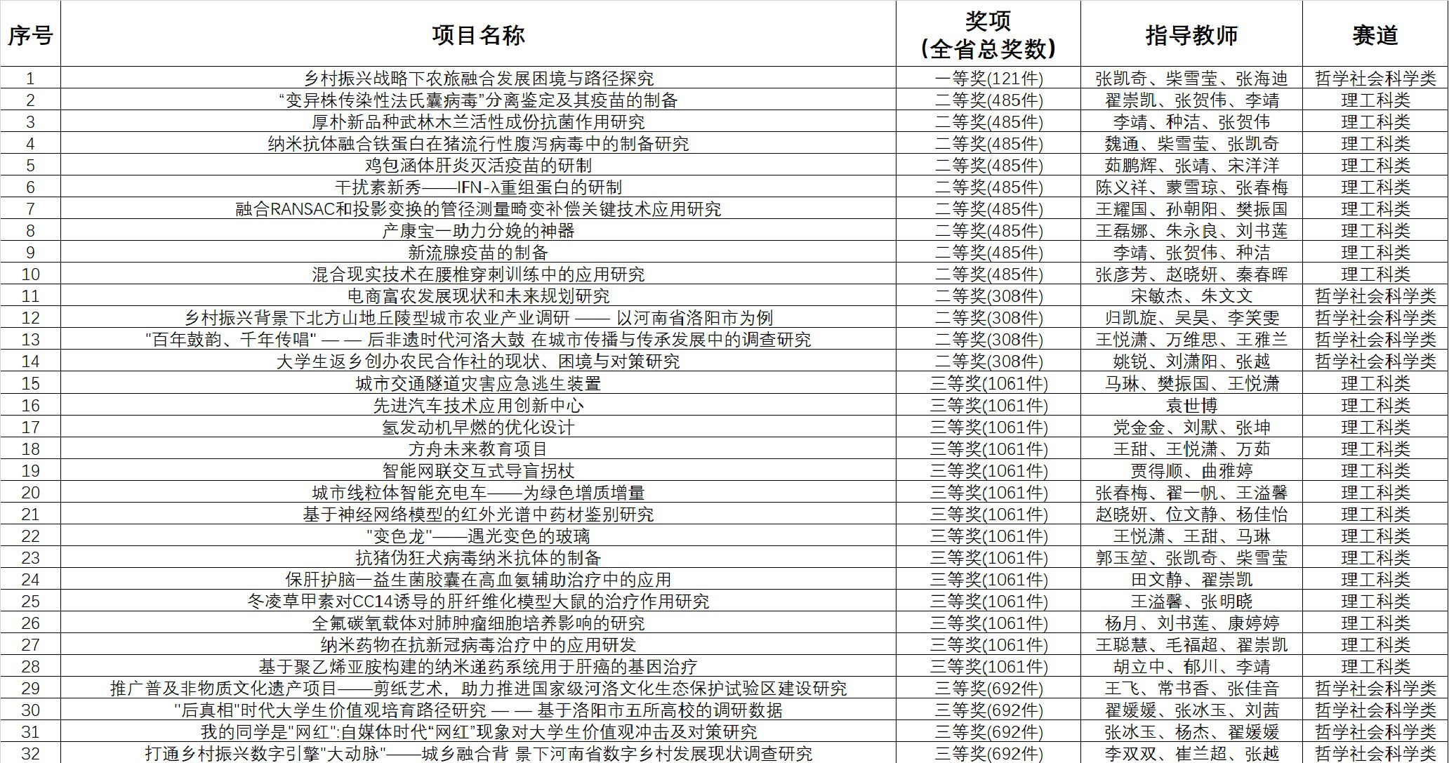 近日,第十六届“挑战杯”河南省大学生课外学术科技作品竞赛获奖作品公布,我校共收获一等奖1项、二等奖13项、三等奖18项。