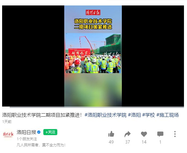 洛阳日报微信视频号:洛阳职业技术学院二期项目加紧推进