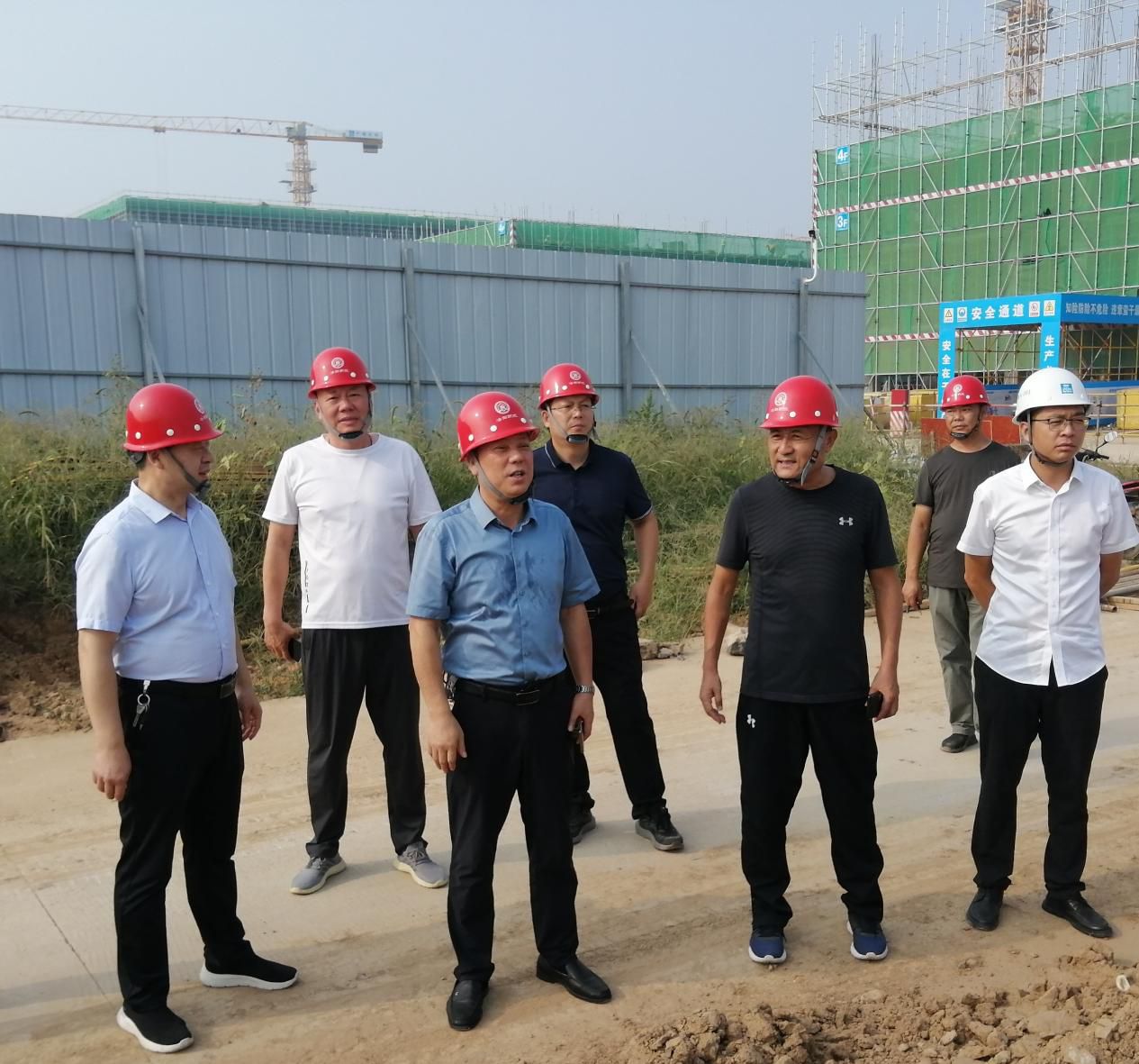 9月6日,校领导邓卫国、刘航到新校区二期工程施工现场督导检查。
