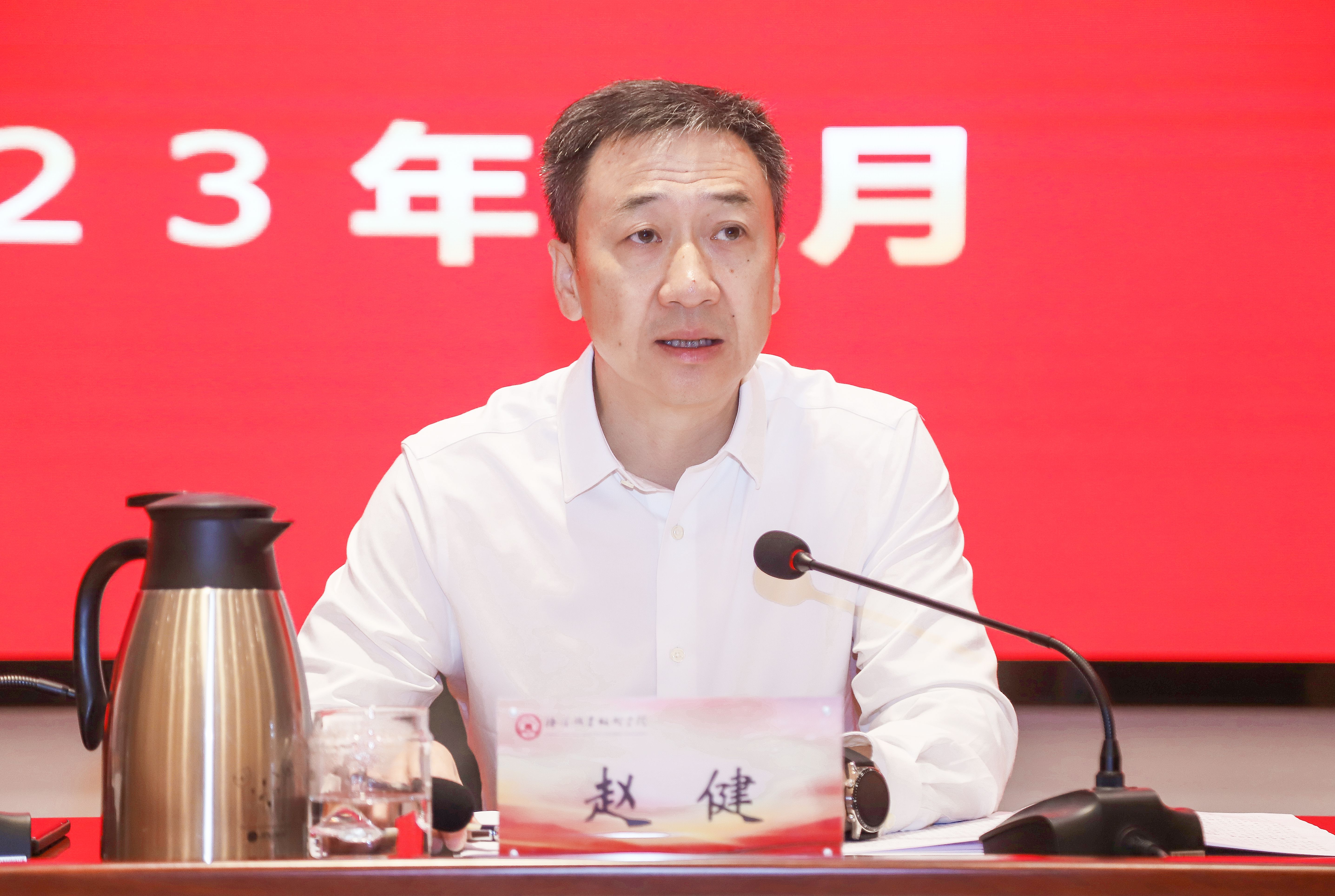 赵健在讲话中表示,此次会议主要任务是:深入学习贯彻习近平总书记关于主题教育的重要讲话和重要指示批示,认真落实党中央、省委和市委部署要求,对学校主题教育进行安排部署,动员全校各级党组织和全体党员干部自觉用党的创新理论统一思想、意志和行动,凝心聚力以高质量党建引领推进“双高校”和职教本科专业建设。赵健强调,一要统一思想,提高认识,深入领会开展学习贯彻习近平新时代中国特色社会主义思想主题教育的重大意义。要深刻认识开展主题教育是忠诚拥护“两个确立”、坚决做到“两个维护”的必然要求,是锤炼过硬干部队伍、推动干部主动担当作为的必然要求,是建设“双高校”、争创职业本科大学的必然要求,是深化自我革命、全面从严治党的必然要求;二要锚定任务,落实举措,把高标准高质量贯穿主题教育全过程。要坚持“学”字为先,推动主题教育入心入脑;要坚持“实”字为上,推动主题教育走深走实;要坚持“干”字当头,推动主题教育见行见效;要坚持“改”字破题,推动主题教育落地落实;要坚持“制”字为重,推动主题教育聚力聚效。三要加强领导,明确责任,确保主题教育取得实实在在成效。各级党组织书记要扛起第一责任人职责,既要率先垂范学习、主动接受教育,又要层层压实责任、从严抓好落实;要把开展主题教育同贯彻落实党的二十大精神和党中央、省委、市委决策部署结合起来,同完成学校全年任务目标结合起来,协调推进主题教育各项重点措施;要统筹谋划好主题教育宣传工作,充分发挥“两微一端”媒体平台作用,大力宣传开展主题教育的重大意义、目标任务、典型经验和显著成效;要发扬马克思主义优良学风,注重实际效果,力戒形式主义、官僚主义。