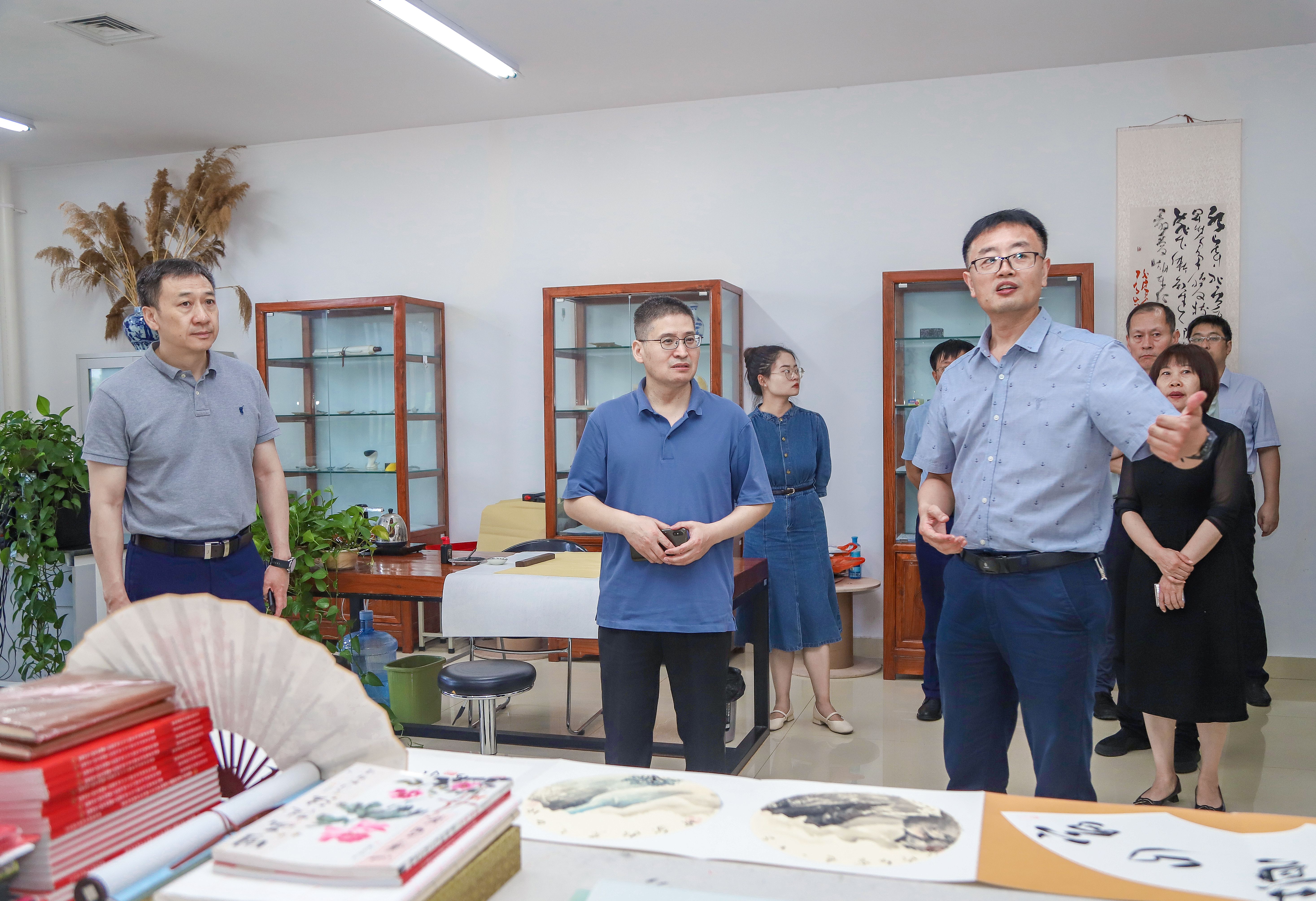 周君生先后到文物保护考古学院陶瓷器制作、金属文物修复、陶瓷器文物修复、考古探掘实训室、赵振涛书法工作室、文物信息采集中心、展陈中心,文化与旅游学院王飞大师工作室、剪纸艺术研究社等地,实地查看了我校实训室建设和非遗驻校园工作开展情况。