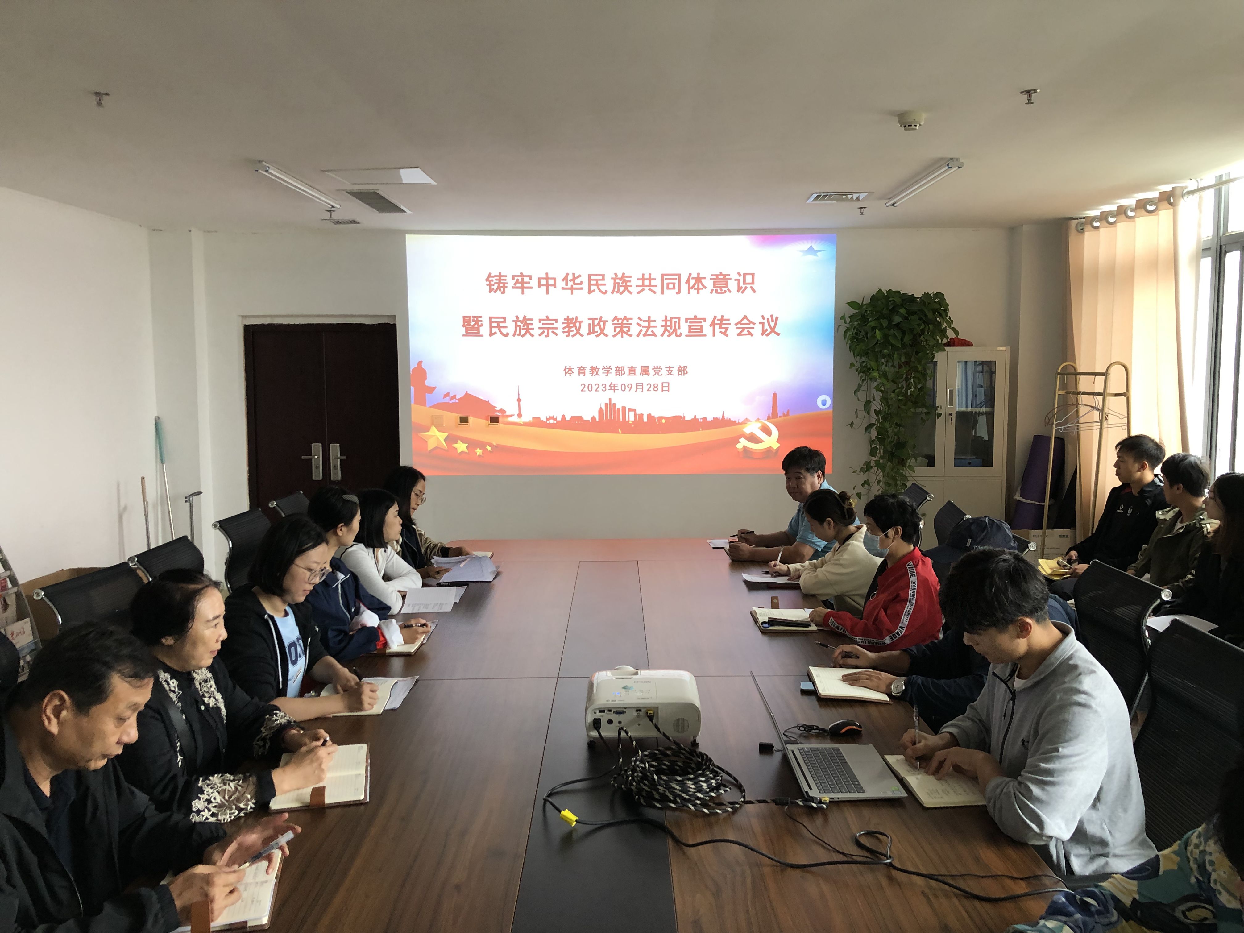 9月28日,体育教学部在教研室会议室召开铸牢中华民族共同体意识暨民族宗教政策法规宣传月专题工作会议,会议由支部书记王莉主持。