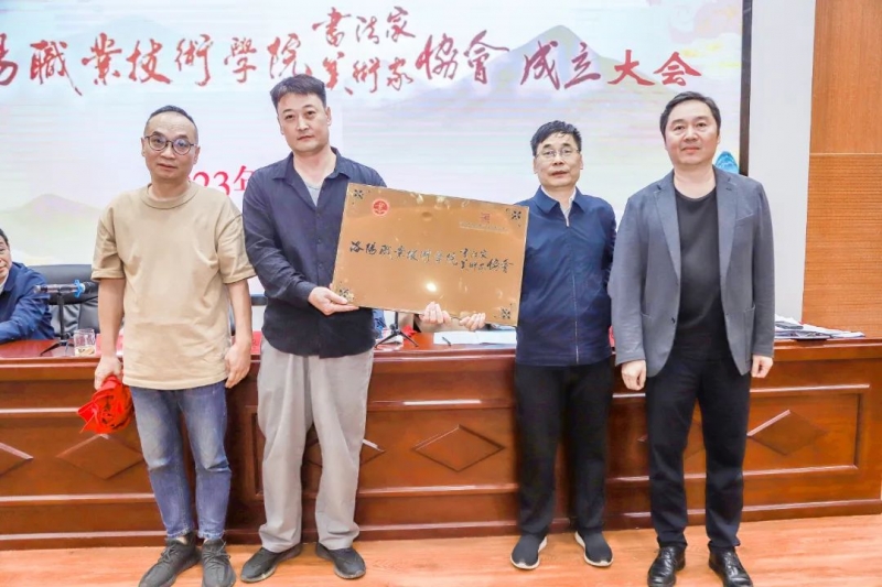 市美协主席张建京、市书协主席刘灿辉共同为洛阳职业技术学院书法家协会、美术家协会揭牌。