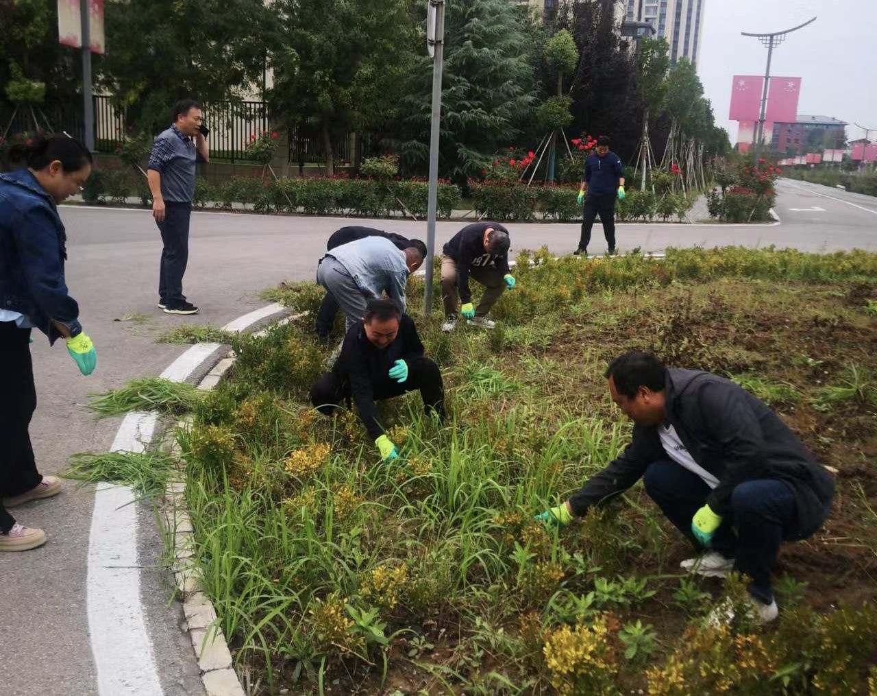 活动中,党员带头对校园绿化草坪的杂草进行清理,部分职工、保安、物业工作人员积极参加志愿劳动,大家充分发挥不怕脏、不怕苦、不怕累的精神,分别到各自负责的区域开展义务劳动。经过几个小时的努力,校园部分区域杂草基本清除干净,草坪及周边绿化带焕然一新。