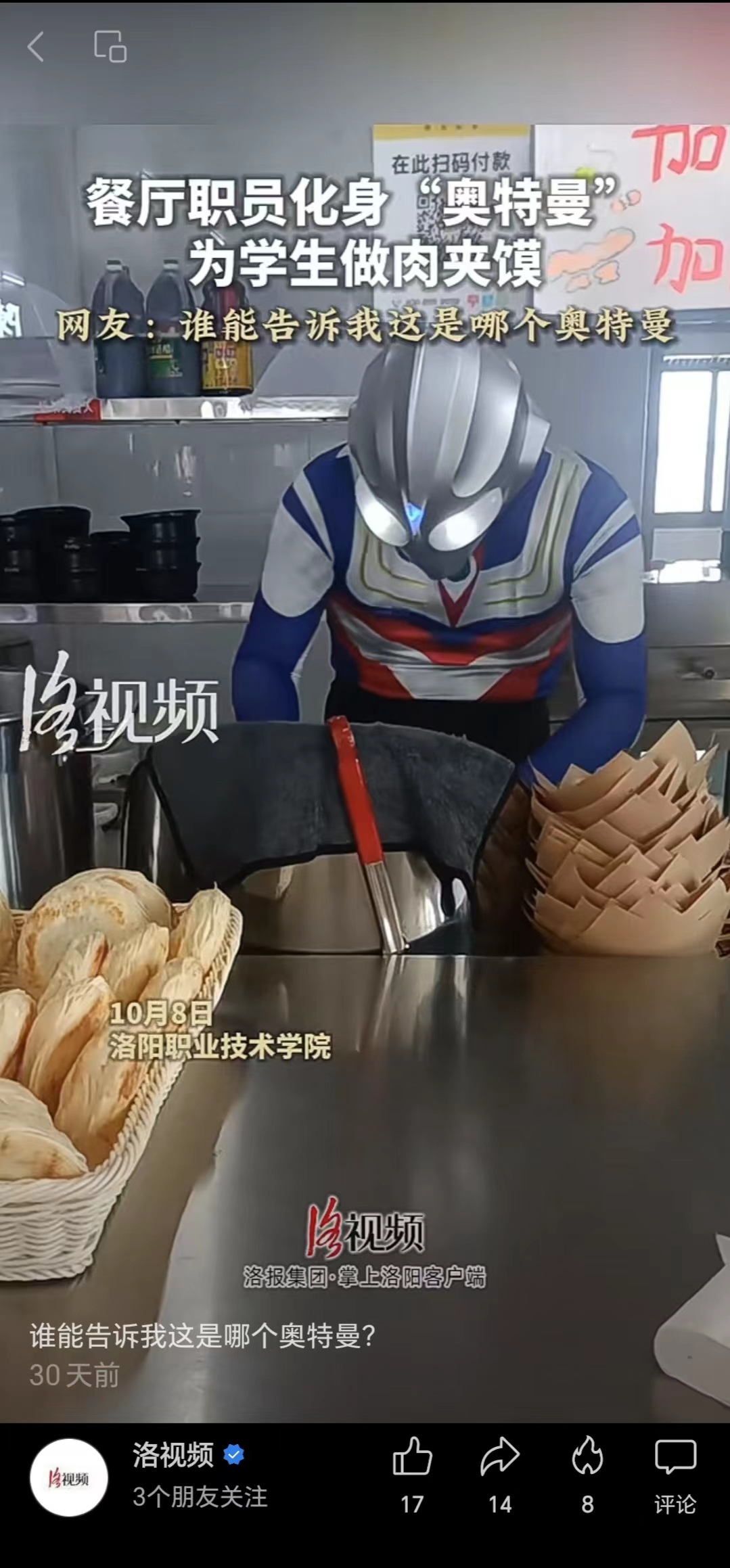 2023年10月9日,洛视频报道谁能告诉我这是哪个奥特曼?有关于我校。报道原文如下:
