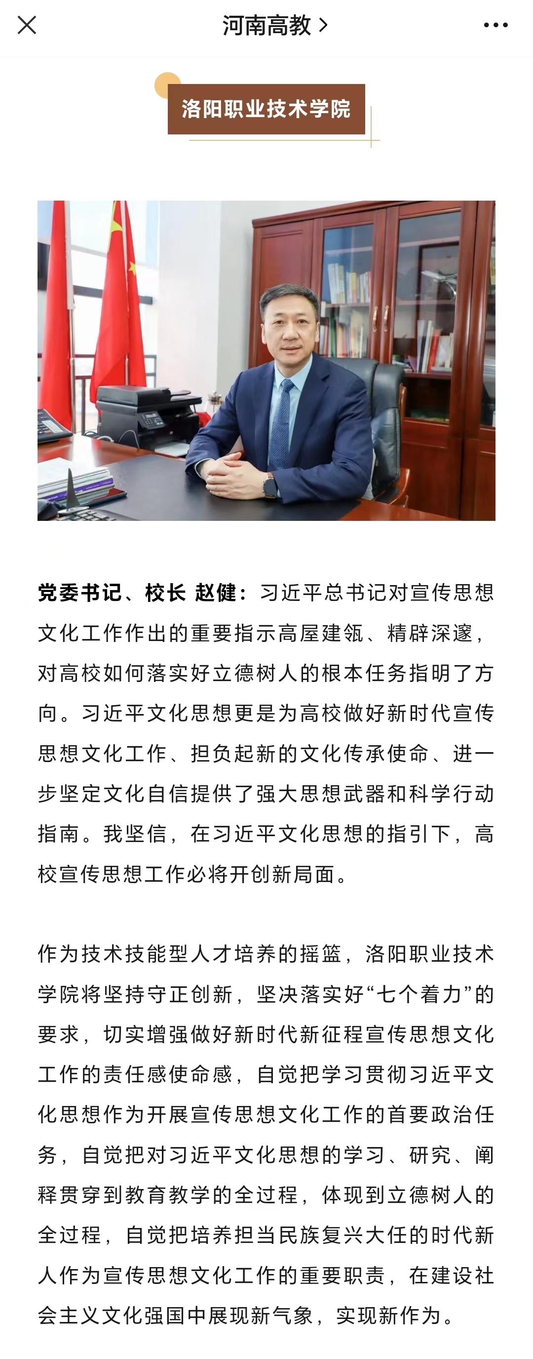 编者按:2023年10月12日,河南高教报道切实担负起新的文化使命!河南高校书记校长热学热议习近平文化思想。报道原文及相关链接如下: