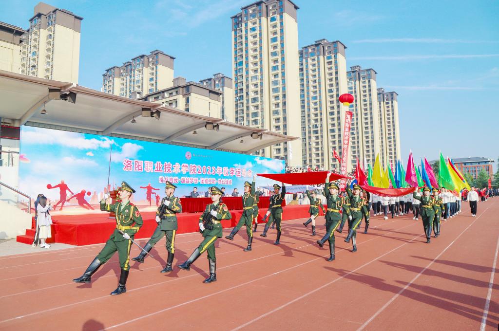 10月26日上午,洛阳职业技术学院2023年秋季运动会在伊滨校区田径场开幕。副校长韦元民、余江宁、李保安、张志友,校领导邓卫国、孙建勋出席开幕式,全体教职工、各参赛单位师生运动员、裁判员参加开幕式。