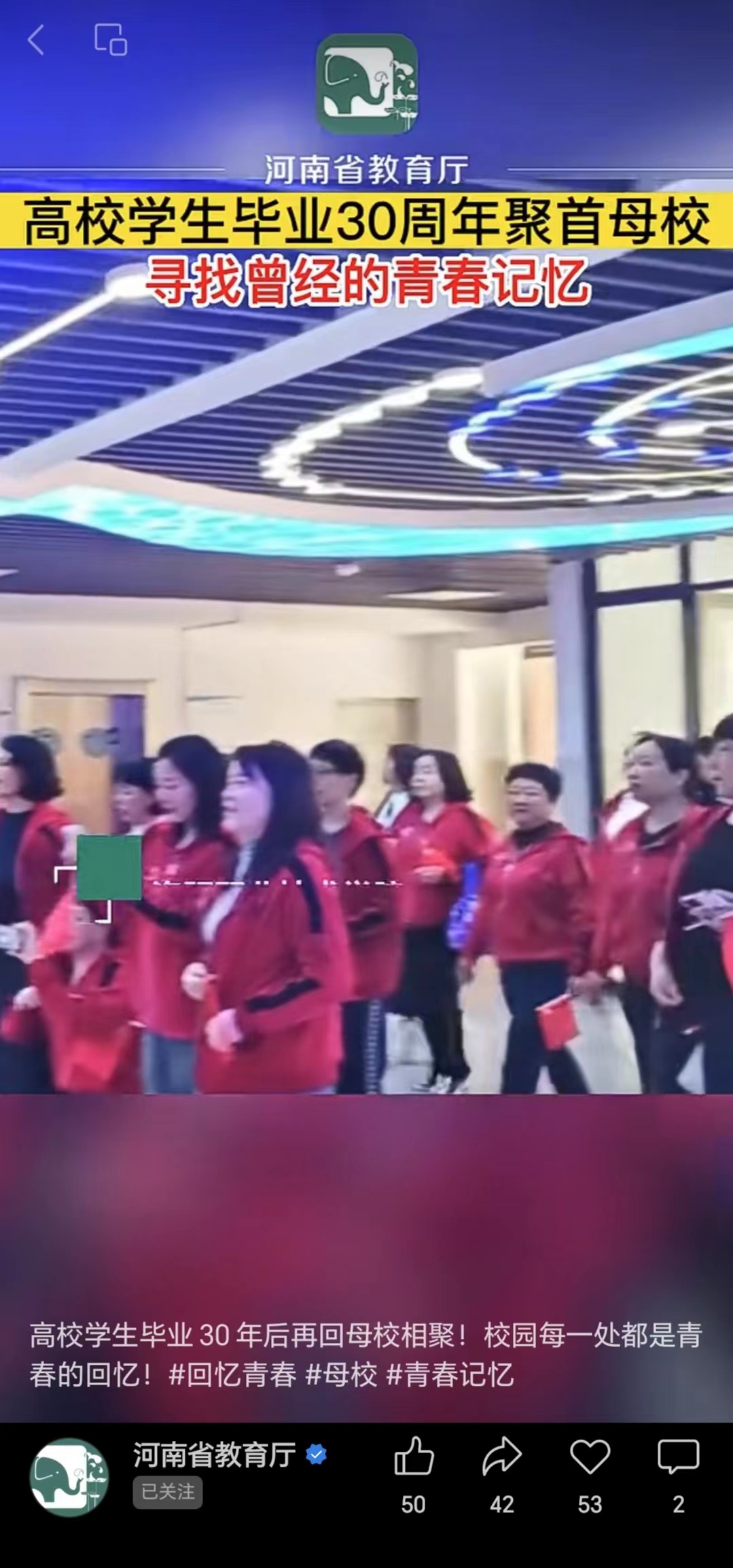 河南省微信视频号:高校学生毕业30年后再回母校相聚!