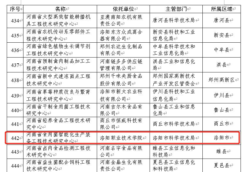 近日,河南省科技厅公示了《2022年度拟认定河南省工程技术研究中心名单》,我校机电工程学院申报的“河南省食用菌智能化生产装备工程技术研究中心”获批建设。
