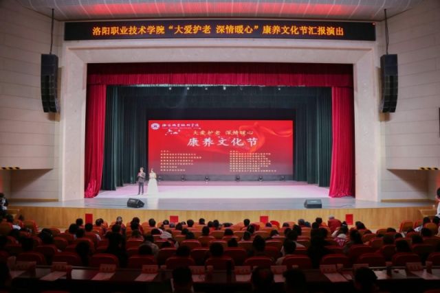 11月9日,洛阳职业技术学院第一届康养文化节在洛职大剧场举行。洛阳市养老服务中心主任高丁,伊滨区民政局副局长耿晓洁,洛阳职业技术学院党委副书记任晓平、副校长张志友出席活动,各二级学院师生代表、伊滨区“乐养居”养老服务中心老年人代表参加活动。