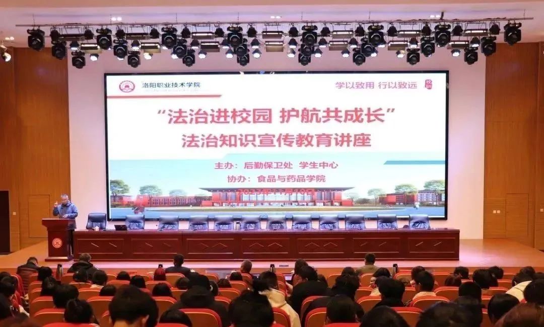 为进一步学习宣传贯彻落实党的二十大精神,落实习近平总书记关于教育工作的重要论述和习近平法治思想,提升学生法治素养,深化校园法治安全教育,弘扬法治精神,构建平安和谐校园。11月10日下午,洛阳市职业技术学院、洛阳市司法局、洛阳市律师协会联合举办的“法治进校园,护航共成长”法治教育讲座在洛职院大学生活动中心报告厅举行。