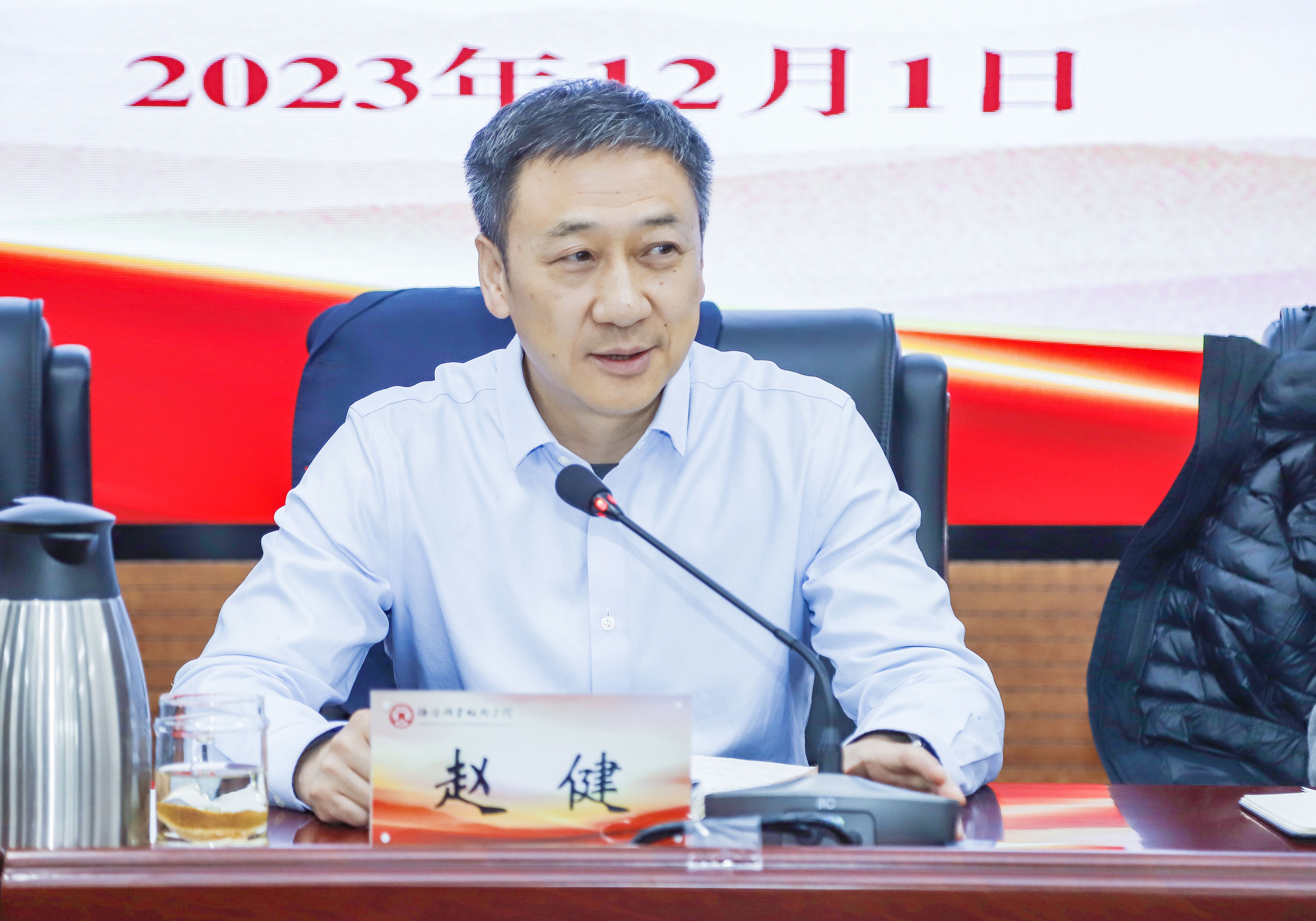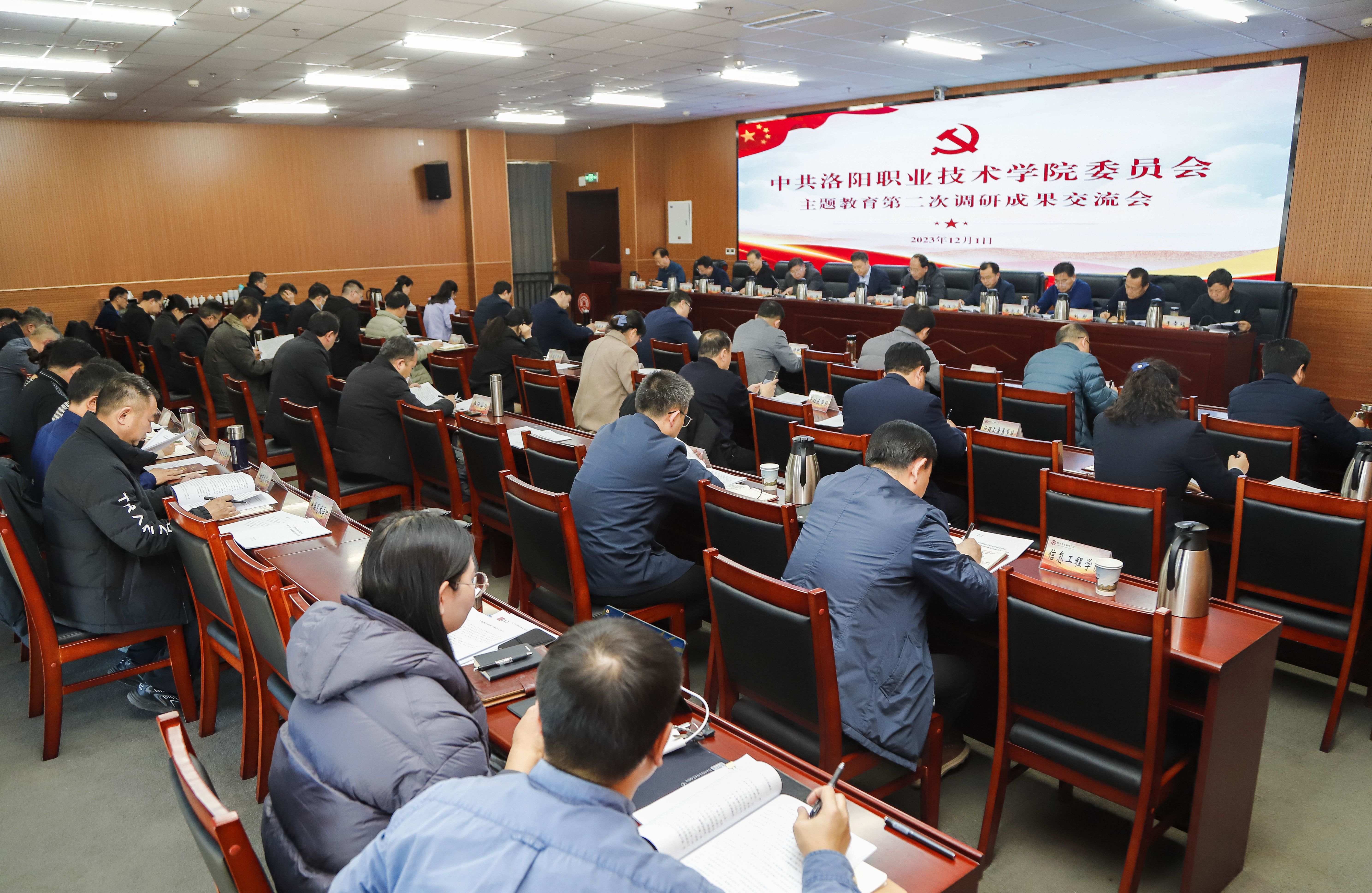 交流发言结束后,赵健作总结讲话。他指出,要推动调查研究走向常态化长效化,坚持“跳出校内”“眼光向外”,摸清洛阳市产业、行业发展现状,立足本职落实好“围绕产业办专业,办好专业促产业”工作理念,服务现代化洛阳建设发展大局。他强调,调查研究要抓牢解决问题这个“牛鼻子”。要解决好能力素质同高质量发展不相匹配的问题,在提升学习力、洞察力和执行力上求突破,重点提升政治能力、改革攻坚能力、做师生工作能力、狠抓落实能力以及数字化等业务能力,让求真务实成为“洛职”干部必备的精神状态和最鲜明的履职特征。要解决好当前学校发展过程中存在的困点、堵点和难点问题,聚焦产教融合与校企合作,国家级“双高校”与职教本科建设,职教国际化建设,数字化校园建设,新校区二期建设等重点问题靶向施治,把产教融合作为学校发展的生命线、办学的基本模式和办好职业教育的关键所在,让学生更具“国际化”视野,力争“一条腿”迈进国家级“双高”序列,办好3到5个职教本科专业,用3到5年时间将学校打造成为全省数字化校园标杆,全力保障新校区二期项目建设进度。