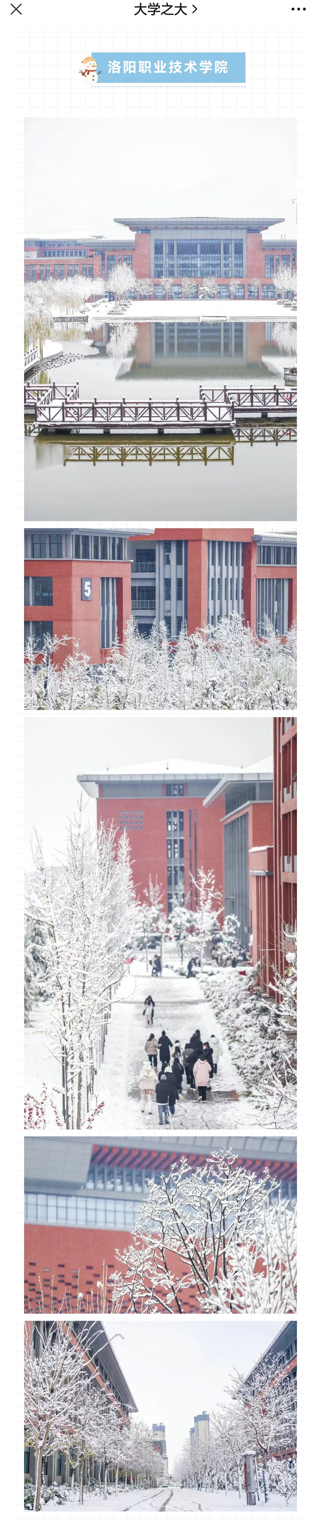 编者按:2023年12月12日,大学之大报道一大波河南高校雪景大片来袭,最美高校雪景等你来选!其中有我校。报道原文及相关链接如下: