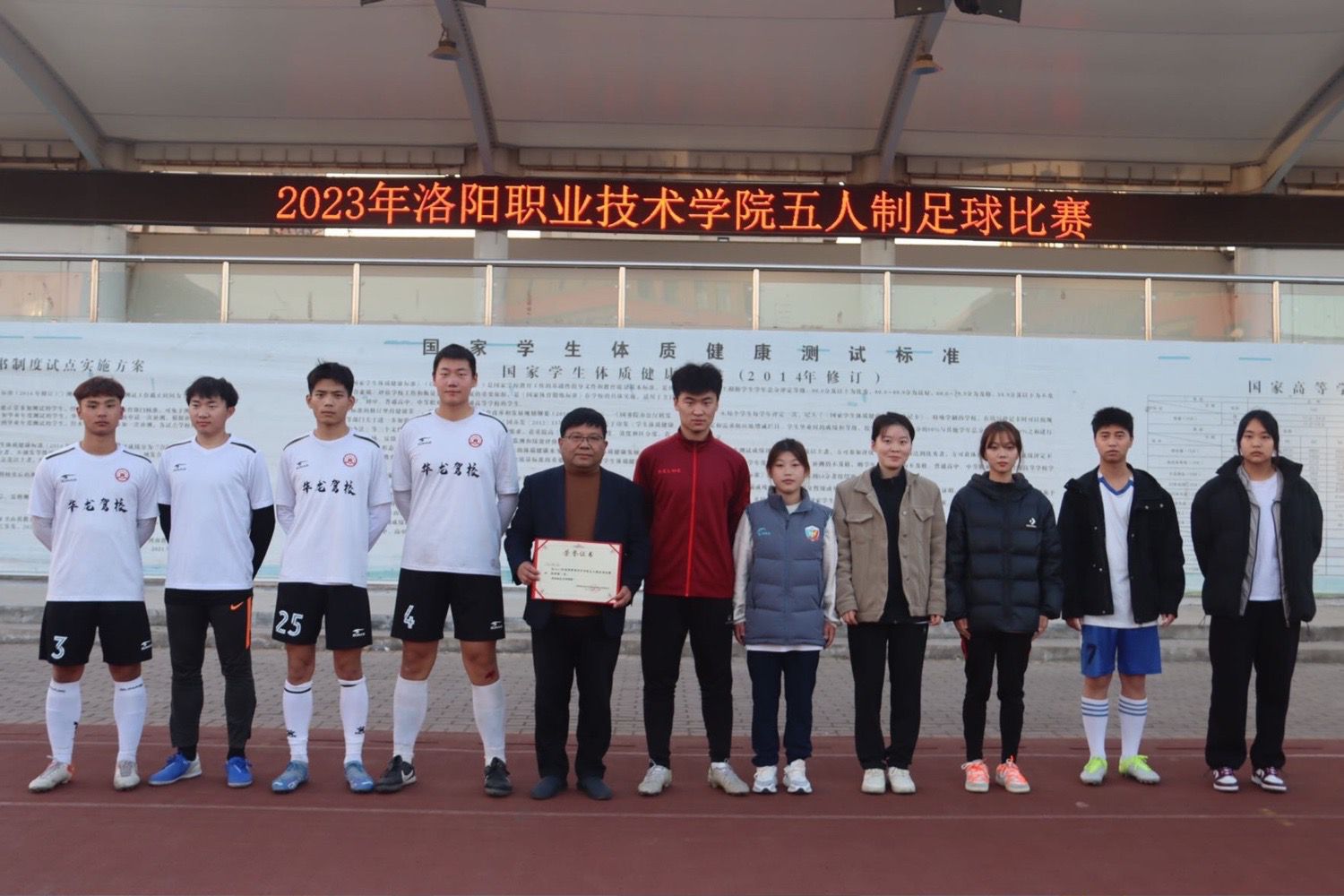 2023年洛阳职业技术学院五人制足球比赛由洛阳职业技术学院体育运动委员会主办、体育教学部承办,比赛于11月28日至12月8日在伊滨校区足球场进行,共有11个二级学院代表队参赛。最终经过预赛和决赛的激烈角逐,护理与康养学院代表队获得冠军,基础医学院代表队获得亚军,天工书院代表队和文化与旅游学院代表队,分别位列第三名和第四名