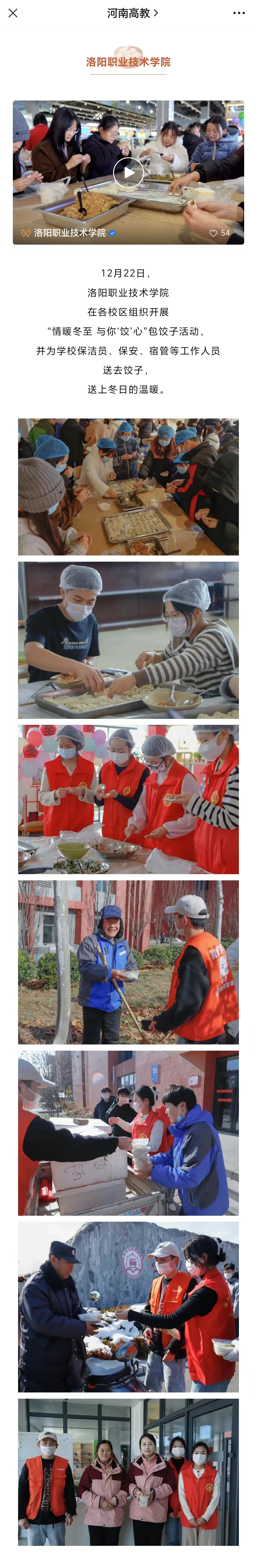 编者按:2023年12月22日,河南高教报道发放餐券、师生共同包饺子......冬至日河南高校师生过得热气腾腾!报道原文及相关链接如下: