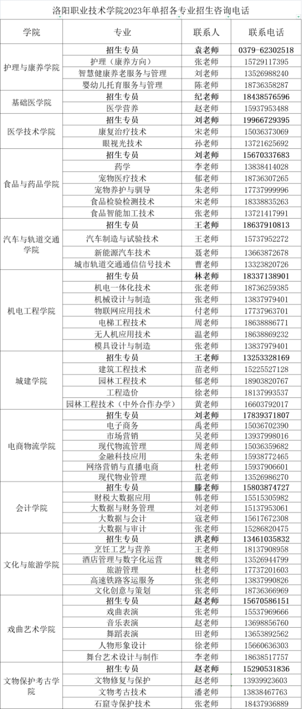 答:各专业招生咨询电话如下: