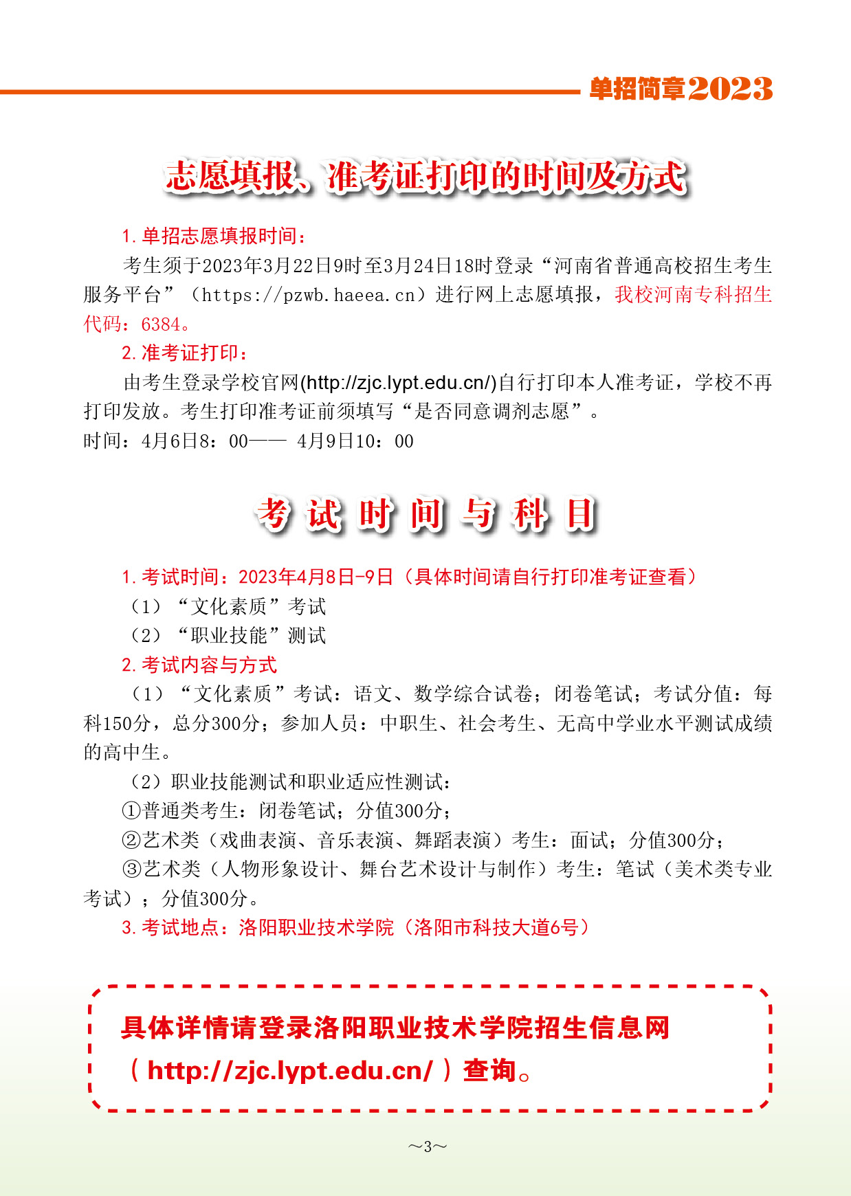 洛阳职业技术学院2023年单招简章