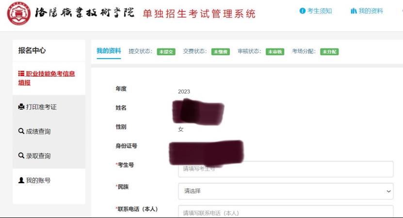 申请“职业技能”免考的考生,须于3月22日9时至3月24日18时,登录学校招生信息网(http://zjc.lypt.edu.cn/)完成“职业技能免考”基本信息填报和证明资料提交。审核通过的考生在学校官网公示,接受社会监督。审核不通过的考生需正常参加我校组织的职业技能测试或职业适应性测试。