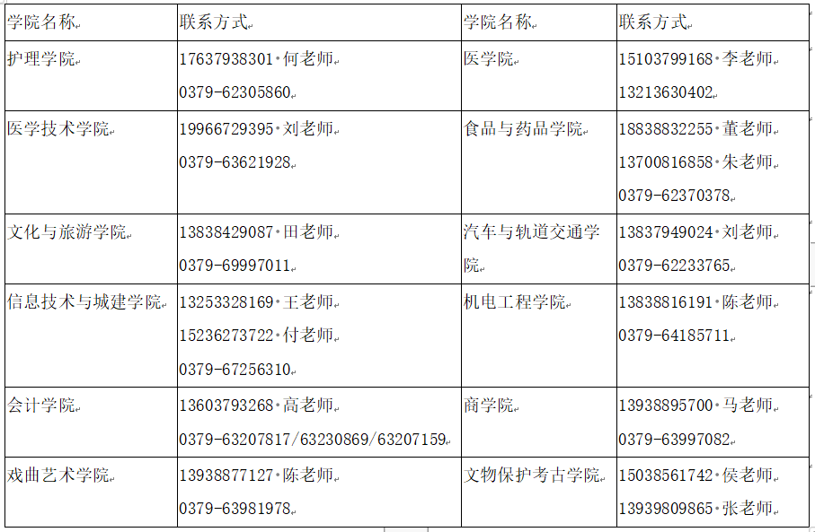 各二级学院联系方式: