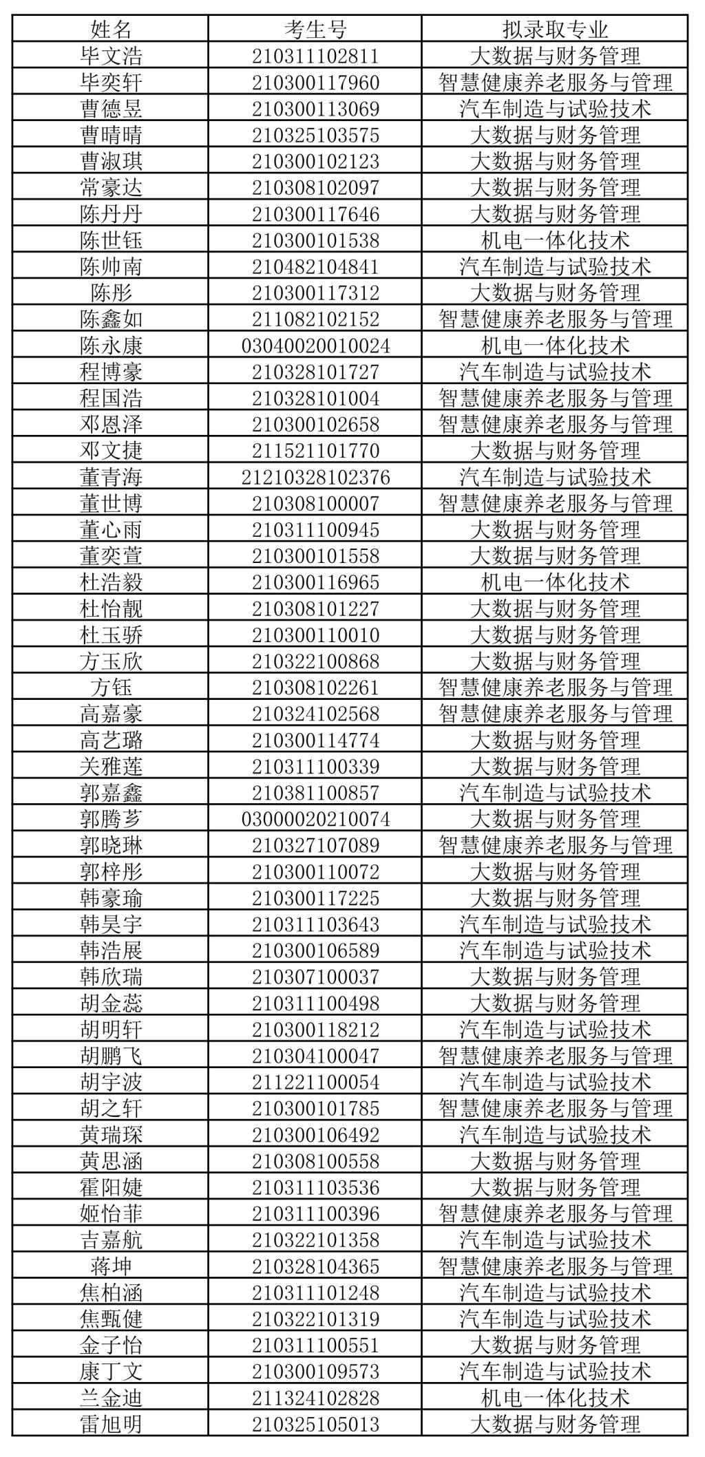 根据7月26日-27日考生征集志愿填报信息,经过资格审核,以下考生本人须到洛阳职业技术学院现场确认,未在规定时间到校现场确认的考生,视为自动放弃录取资格。