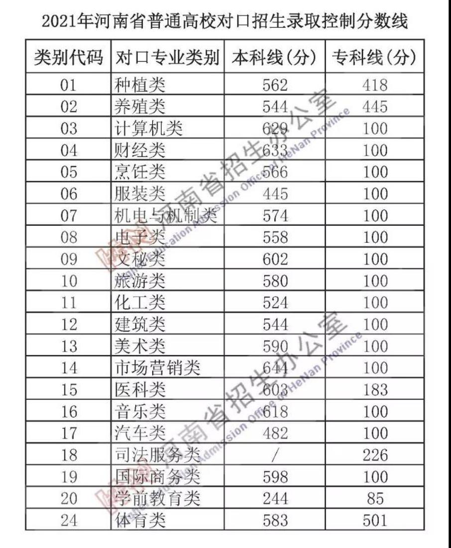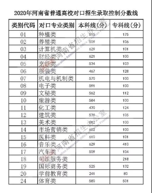洛阳职业技术学院2020年对口各专业录取最低分数