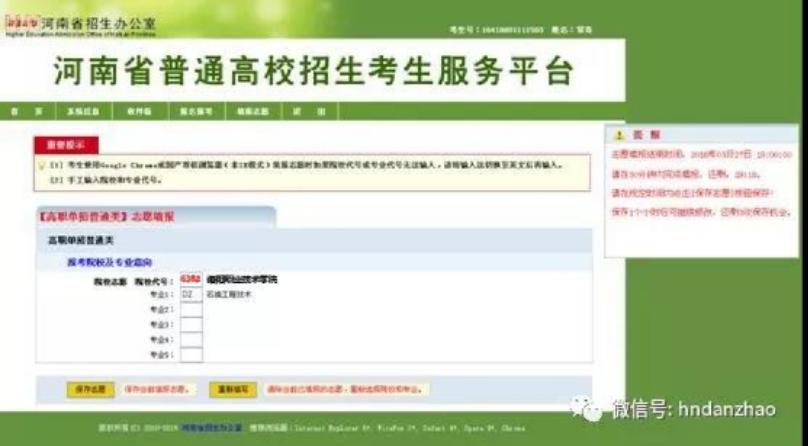 提醒考生注意,须在规定的时间内填报一所高校志愿,并可以进行不超过两次的志愿修改,以网上最后一次保存的志愿为准,填报时间截止后将无法补报和更改。