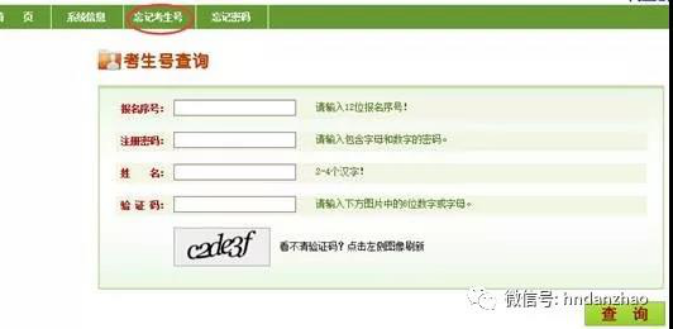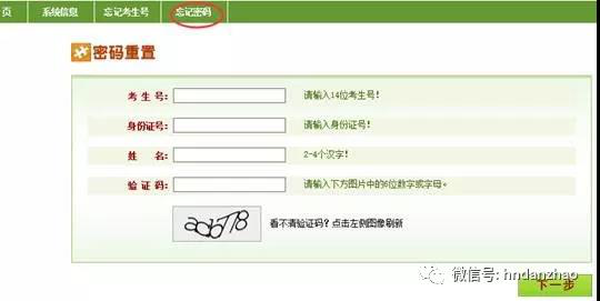 3、如果考生忘记自己的考生号和密码可以通过菜单栏的“忘记考生号”和“忘记密码”菜单项找回自己的考生号和重置自己的密码。如下图: