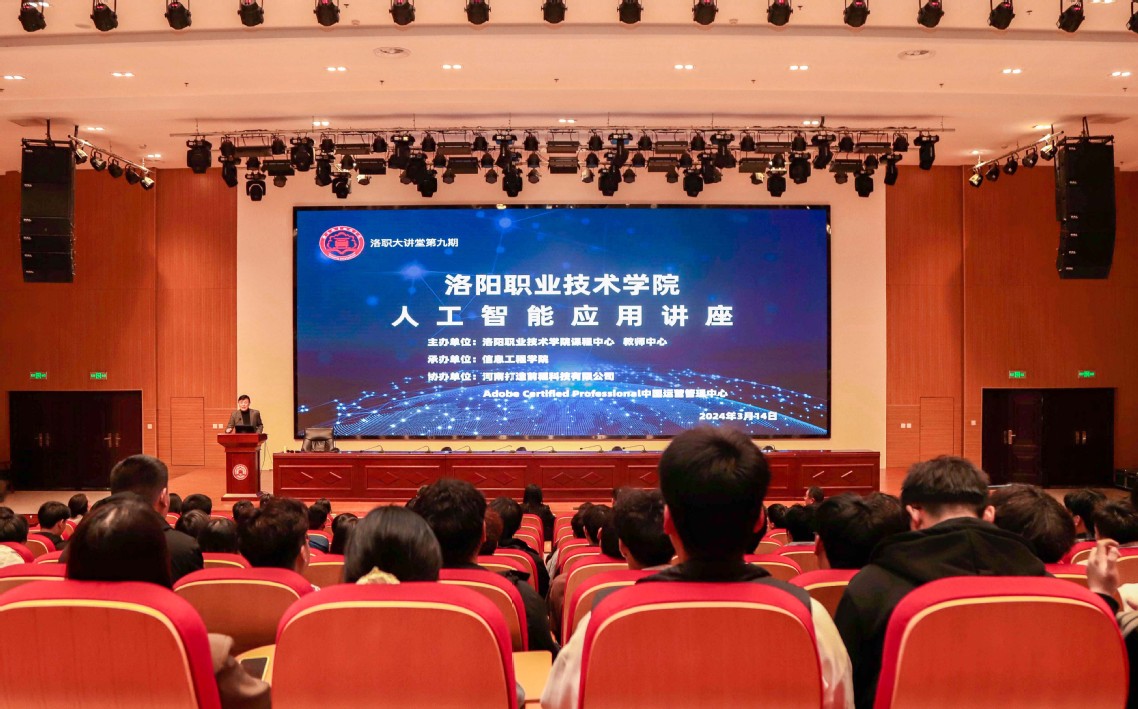3月14日下午,洛职大讲堂第九期在大学生活动中心开讲,Adobe Certified Professional中国运营管理中心专家吴统瑞以为广大师生作了一场人工智能应用主题讲座。
