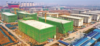 近日,在洛阳职业技术学院二期项目建设现场,工人正加紧施工。该项目位于伊滨区,整体建筑为汉魏风格,建设教学楼、实训楼、宿舍楼、餐厅、操场等。目前,该项目15栋在建楼体已全部封顶。项目建成后,洛阳职业技术学院高新校区、西工校区和瀍河校区将全部搬至新校区。