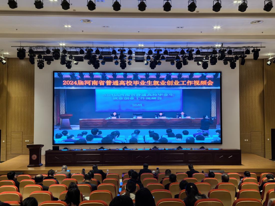 3月16日,我校在大学生活动中心一楼报告厅组织收听收看2024届河南省普通高校毕业生就业创业工作视频会议,校长李保安、副校长张卫国出席会议。