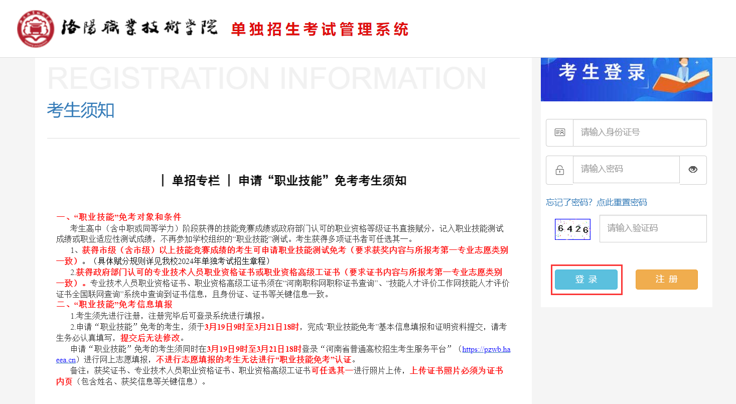 (2)完成上述志愿填报后,考生须于3月19日9时至3月21日18时,登录学校招生信息网(https://zjc.lypt.edu.cn/)完成“职业技能免考”基本信息填报和证明资料(获奖证书、专业技术人员职业资格证书、职业资格高级工证书、身份证等原件照片)提交。
