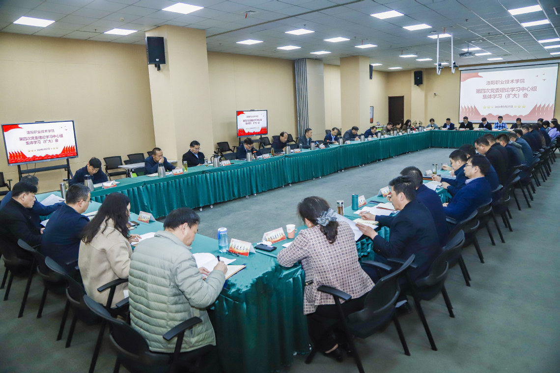 3月27日,洛阳职业技术学院举行2024年第四次党委理论学习中心组集体学习(扩大)会,专题学习全国两会精神,并围绕学习内容联系思想和工作实际进行交流讨论。党委书记赵健主持会议并讲话。