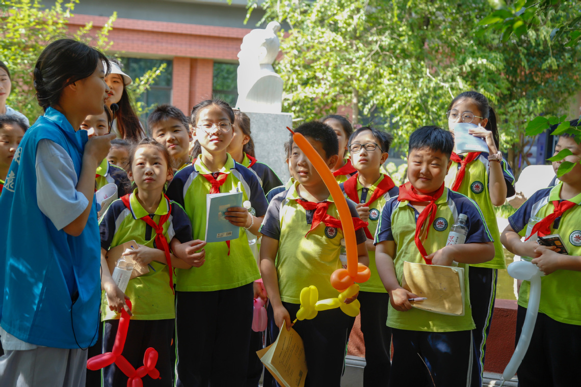 旅游管理专业学生化身项目负责人,利用所学专业知识开展研学管理实践,制订方案、组织实施,医学专业学生协同联动,利用专业技能开展公益服务性劳动。枫叶路小学学生们在洛职哥哥姐姐们的带领下分组在生命与健康科学馆、百草园劳动实践基地、王飞剪纸工作室开展关爱生命、热爱生活的科学体验和项目实践。