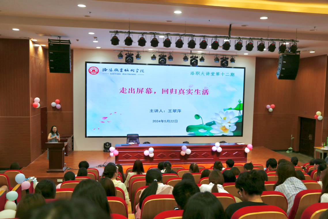 5月22日上午,洛职大讲堂第12期在大学生活动中心心理剧场开讲。洛阳师范学院心理学博士王翠萍应邀为广大师生作了一场“走出屏幕 回归真实生活”专题讲座。
