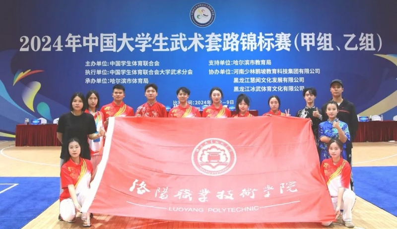 洛阳职业技术学院武术队参赛队员在比赛中表现出了顽强的拼搏精神和高超的竞技水平,凭借着良好的心理素质和出色竞技状态,在激烈的角逐中脱颖而出,共收获单项9金7银7铜,以及团体女子乙A组第一名、体育道德风尚奖等近40个奖项。