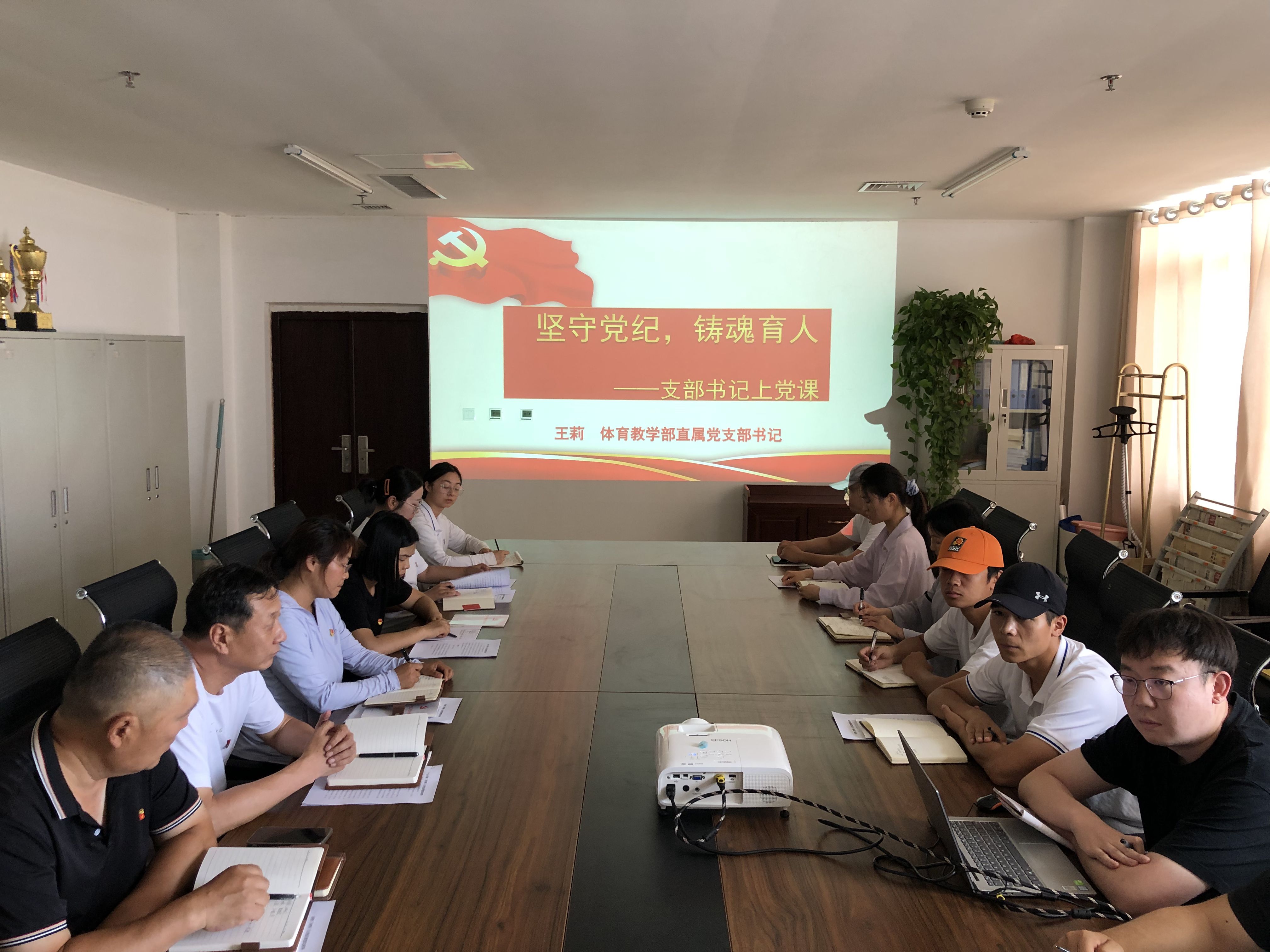 6月13日,体育教学部直属党支部组织召开支部书记上党课暨党纪学习教育自查检视整改会,校长李保安列席会议。