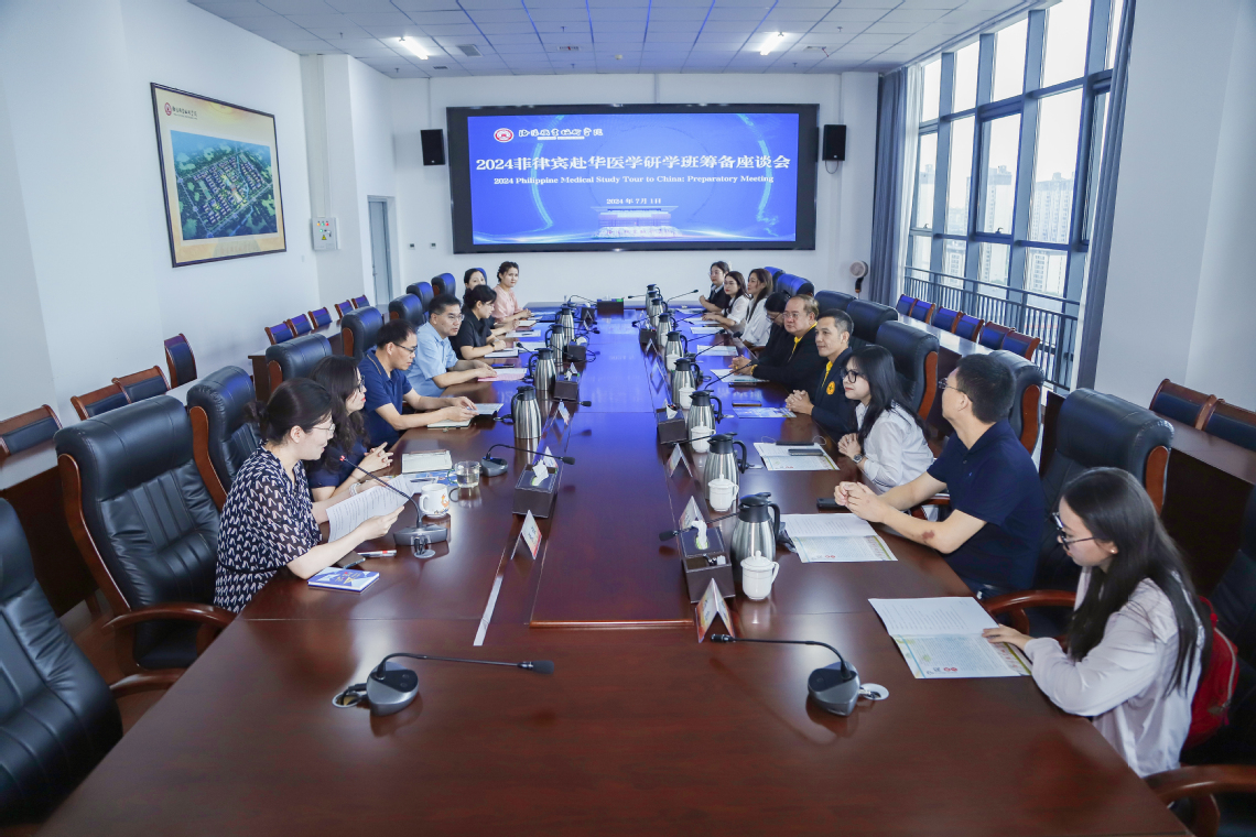 张志友简要介绍了学校基本情况和国际化办学发展现状。他表示,学校高度重视国际交流合作,积极拓展国际合作领域,举办了多期“汉语桥”线上团组交流活动,两年内,共有300余名来自世界各地的学生通过线上线下的形式到我校研学。希望双方以此次访问为契机,促成菲律宾医学研学团在中国的顺利实施,进一步加强双方在学术知识、专业技能、师生互访、文化交流等方面的合作。