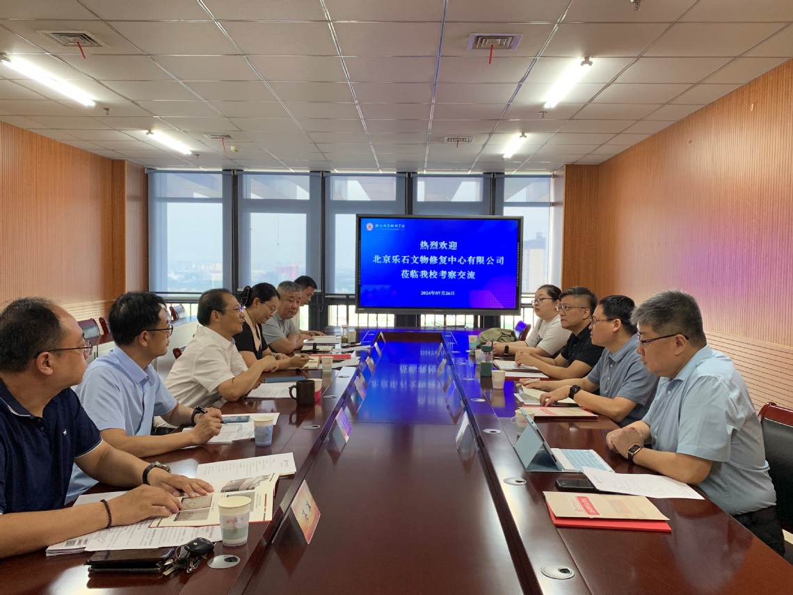 7月25至26日,北京乐石文物修复中心有限公司董事长赵伯乐率队到我校考察交流并举行校企合作座谈会。党委书记赵健会见赵伯乐,校长李保安出席座谈会。